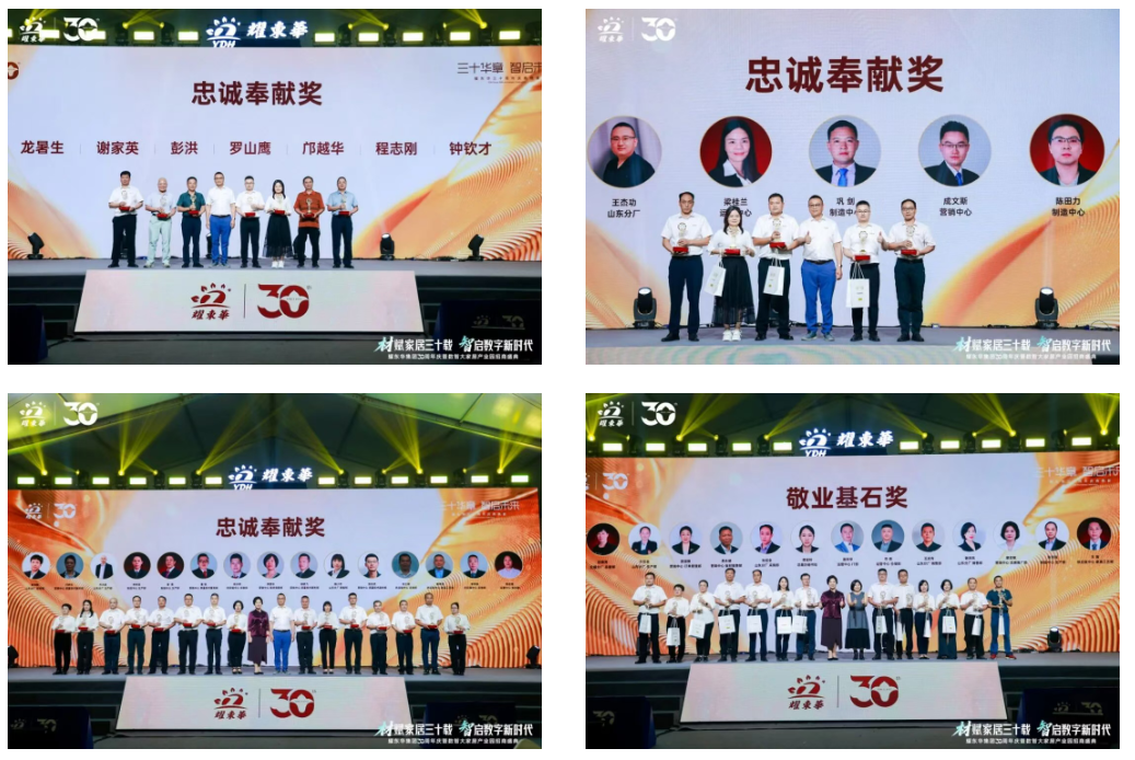 耀东华集团还为员工代表颁发卓越功勋奖、忠诚奉献奖以及敬业基石奖。这一刻,聚光灯照亮的是那些将最宝贵年华奉献给耀东华事业的忠诚伙伴。耀东华集团的员工们将以这些获奖员工为榜样,继续在各自的岗位上发光发热,为集团的发展添砖加瓦,共同书写耀东华更加绚烂的篇章。