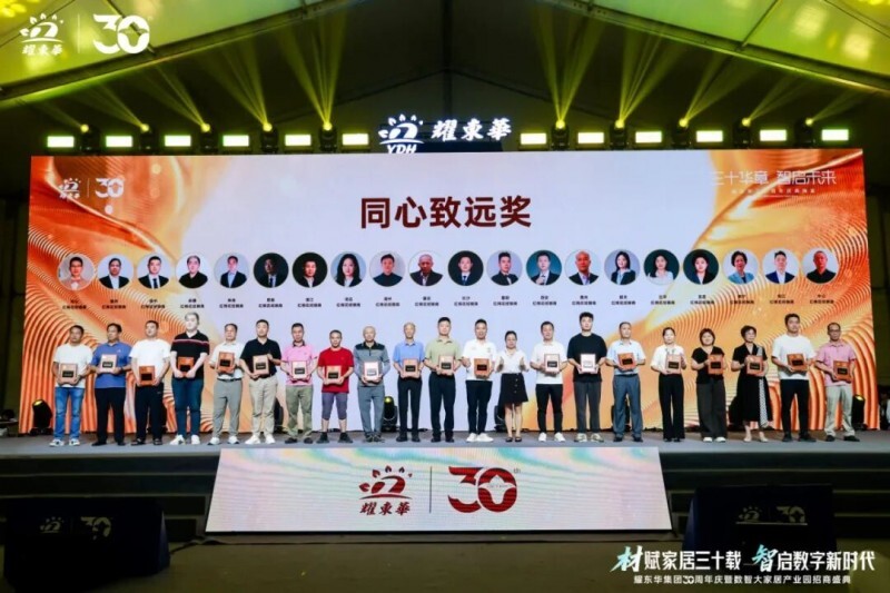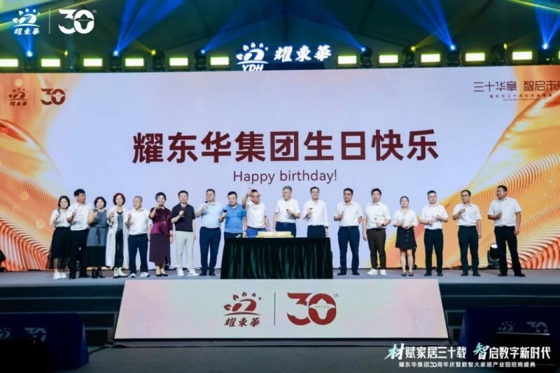 2025年9月28日,耀东华集团迎来创立三十周年的重要时刻。在耀东华科技产业园内,一场以“材赋家居三十载,智启数字新时代”为主题的庆典隆重举行。500余位嘉宾齐聚一堂,行业协会领导、海内外合作伙伴代表、高校产学研专家、全球供应链代表以及社会各界朋友,共同见证这一里程碑式的荣耀时刻。