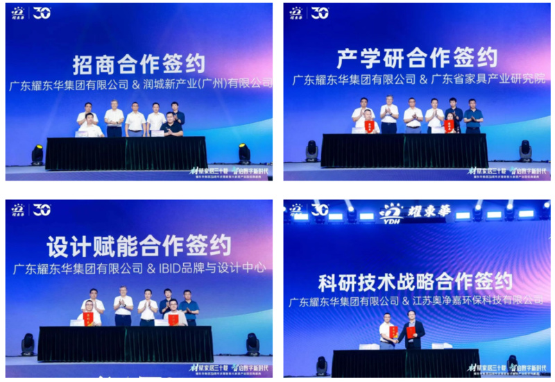 活动现场,广东耀东华集团还与江苏奥净嘉环保科技有限公司官宣成立“新型饰面材料联合研发中心”。