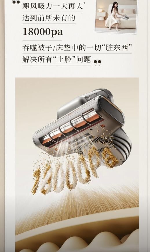 友望护肤搭子 CM2402 采用 “高频拍打 + 强吸力 + 热风紫外线” 的纯物理除螨方式,不含任何化学成分,不会像除螨喷雾那样刺激敏感肌。每分钟 60000 次的高频金属拍打,能穿透 35cm 厚的床垫、枕套,震出深藏在纤维中的螨虫及排泄物;配合 18000Pa 飓风级吸力,能一次性将这些 “刺激源” 彻底吸走,避免接触皮肤引发不适。