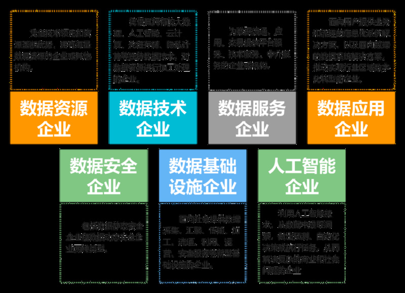 具体而言,数智产业由数据资源、数智技术、数智产品、数智企业、数智生态等五大要素构成。其中数智企业是重要主体,又可划分为数据资源企业、数据技术企业、数据服务企业、数据应用企业、数据安全企业、数据基础设施企业、人工智能企业七大类型。
