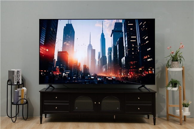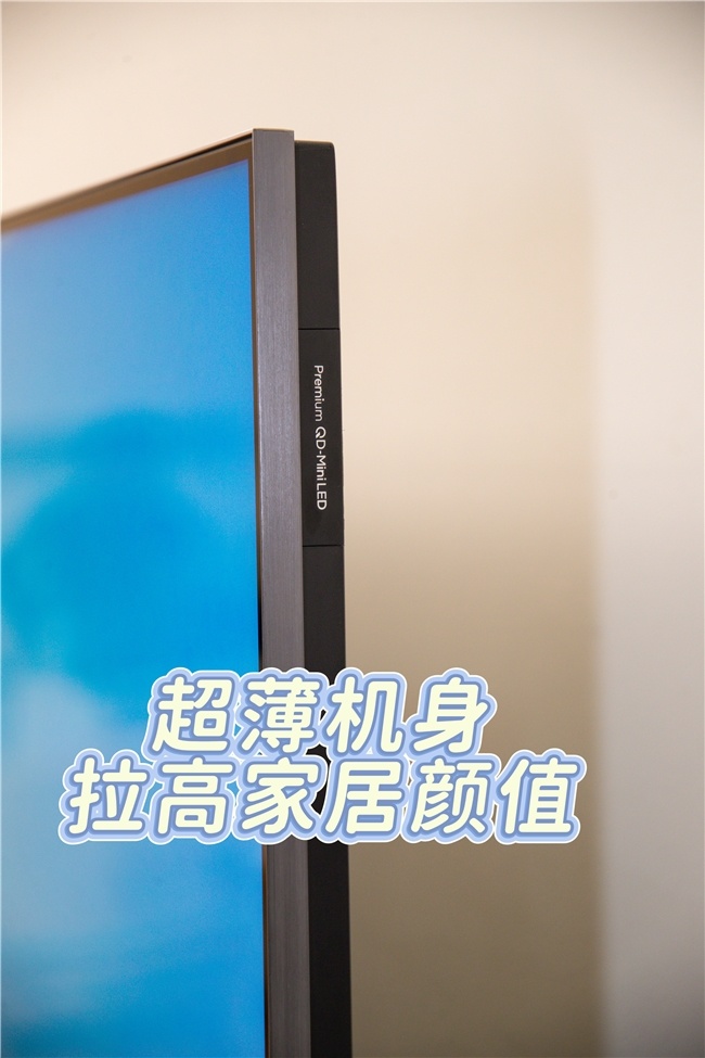 除了硬核的画质配置,TCL T7L Ultra的外观设计也很加分。它的机身厚度<60mm,比同价位电视薄20%,搭配极简的窄边框设计,挂在客厅墙上就像一块“悬浮的艺术画布”,不会破坏家居风格的整体感;哪怕只是放在电视柜上,超薄机身也能减少占用空间,搭配任何装修风格都很协调,可谓颜值与实用性兼备。