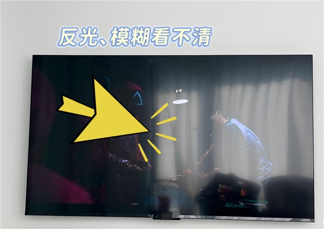先说说大家日常观影最头疼的“反光问题”!很多普通电视没做抗反光处理,反射率通常高达5.6%,白天得拉上窗帘才能看清画面,一有自然光或室内灯光照射,屏幕就像蒙了层雾,人物和场景都泛白;即便有些同价位的高端机型搭载了AGLR屏,能将反射率压到2.6%左右,但它是依靠磨砂涂层来散射光线,虽然降低了反光,却牺牲了画面的通透感和细腻度,影响了观看体验。说到底,这仍是一种妥协方案。