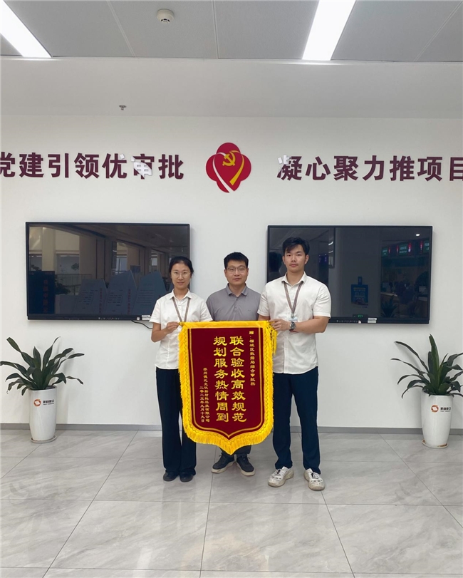 近日,苏州市相城区数据局收到一面饱含企业谢意的锦旗,“联合验收高效规范 规划服务热情周到”这是苏州德比光伏新材料科技有限公司为数据局在企业新建厂房项目验收全流程中的贴心服务点赞。