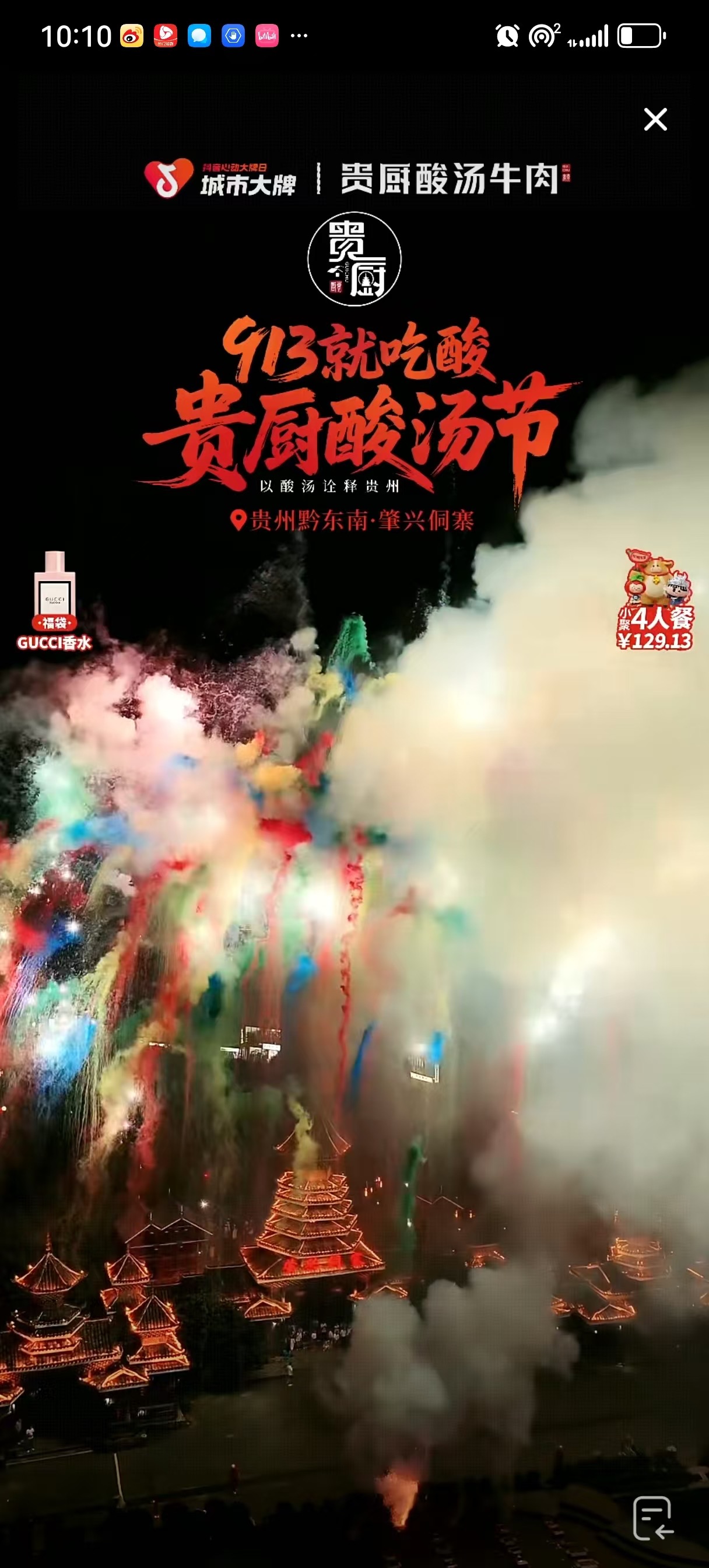 秋风渐起,正是味蕾最渴望被温柔唤醒的时节。此时最令人惦念的,莫过于那一口酸——不如夏日浓烈,不似冬日厚重,却以通透活泼的味感,诠释着独属秋季的风物诗意。值此贵厨酸汤牛肉九周年庆典之际,品牌以“酸”为名,携手「抖音心动大牌日—城市大牌」,于9月8日至14日倾情推出“913就吃酸·贵厨酸汤节”。贵州肇兴侗寨&红阳苗寨、安顺黄果树瀑布,深圳三城联动,不仅推出913元抵1600元震撼代金券,更在直播间豪掷贵州飞天茅台、华为平板、金条等惊喜福袋,以一场跨越山海的味觉巡礼,邀全国食客共赴酸香之约。