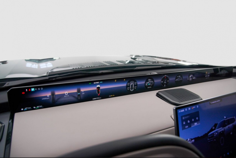 纵横 G700 的智能座舱配置直逼百万级豪车,科技感与实用性拉满。35.4 英寸天际屏横向 900mm 的延展设计,如同将 “天际线” 移入座舱,打破传统视野局限。尤其在越野模式下,它会集中呈现坡度、发动机转速、地形数据等关键信息,用户无需低头或切换界面,视野始终向前,大幅减少分心风险。15.6 英寸中控屏采用 2.5K 真高清分辨率,操作响应时间≤20ms,日常使用流畅无卡顿;后排17.3 英寸家庭影院屏可满足旅途观影需求(如给孩子播放动画片,兼顾全家出行体验),搭配8.88 英寸空调屏支持独立分区控制,让每个驾乘者都能按需调节温度。