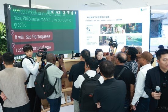 此次体验活动的记者代表来自亚太、非洲、拉美、阿拉伯、中东欧等地区。Leion Hey2除实时翻译与可视化字幕外,还具备佩戴轻便、交互自然等特点,现场吸引大批记者试戴后纷纷点赞,成为“模数世界”展区的明星产品。