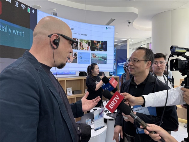 国际记者体验亮亮视野AR翻译眼镜,并接受媒体采访