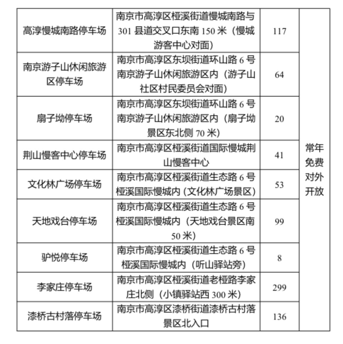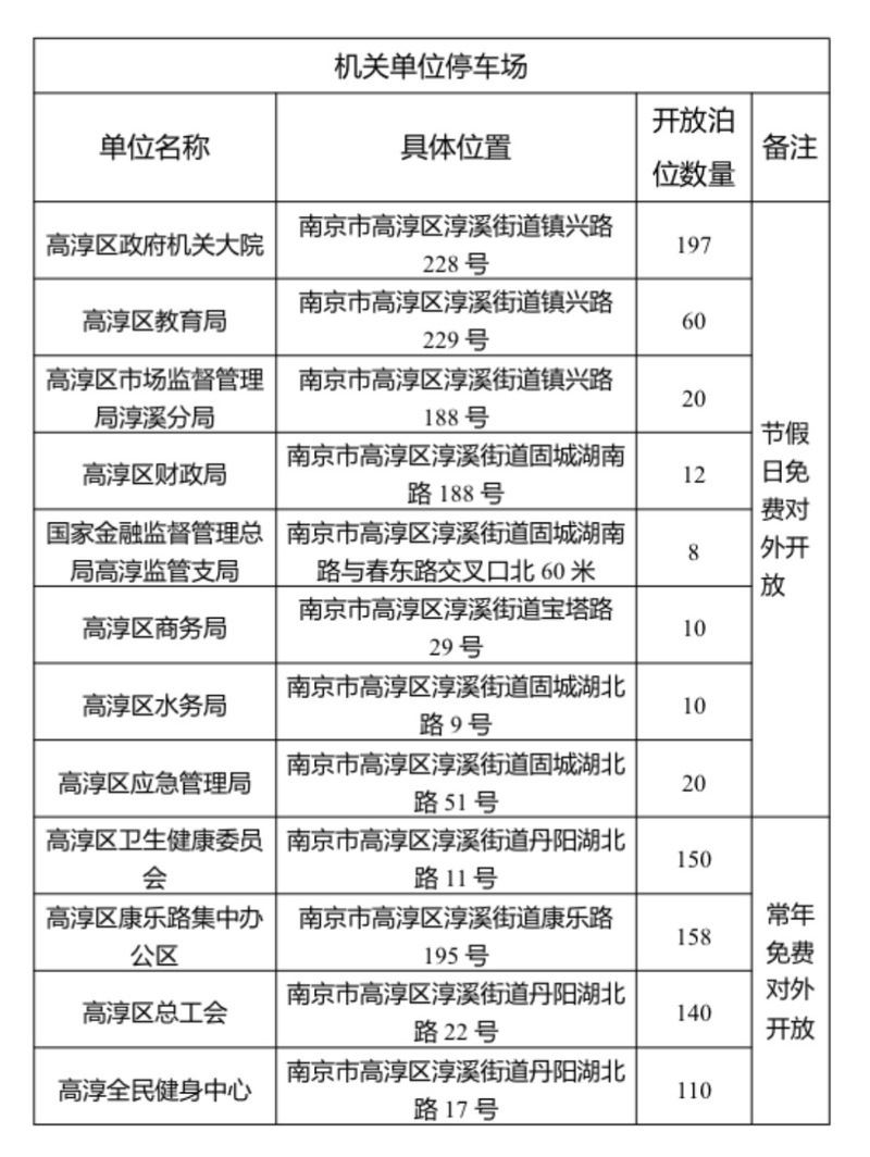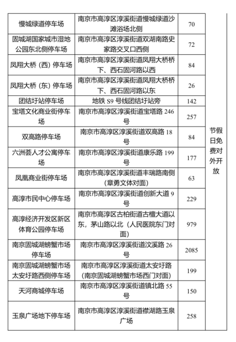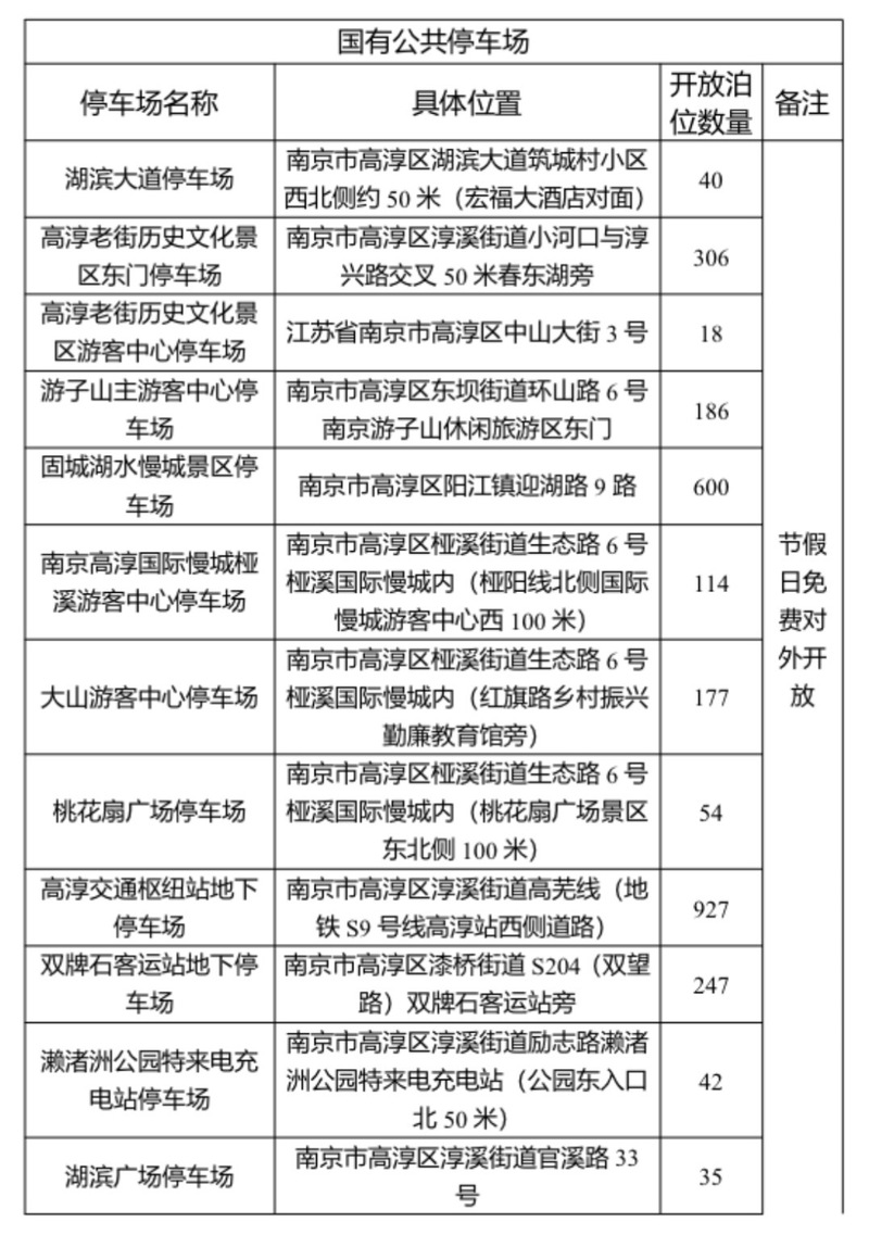 为提升市民与游客出行体验,南京市高淳区自今年起,法定节假日免费开放区内2万余个停车位,供市民游客停车。