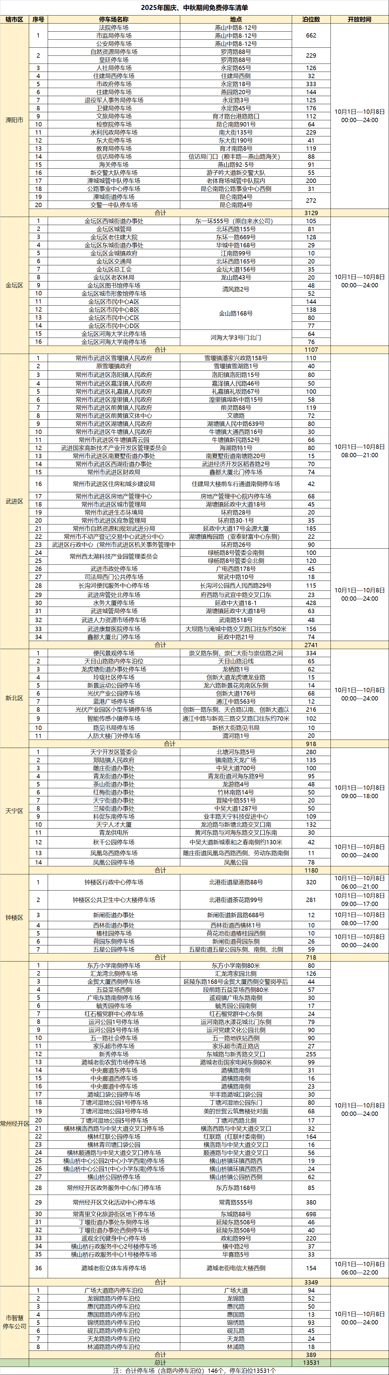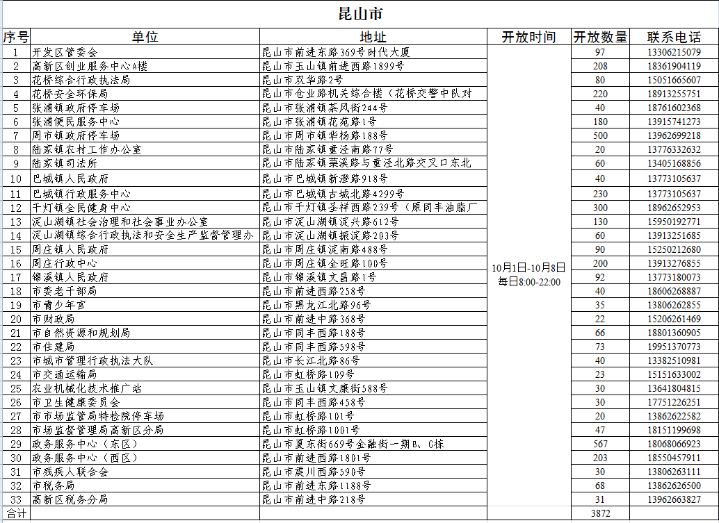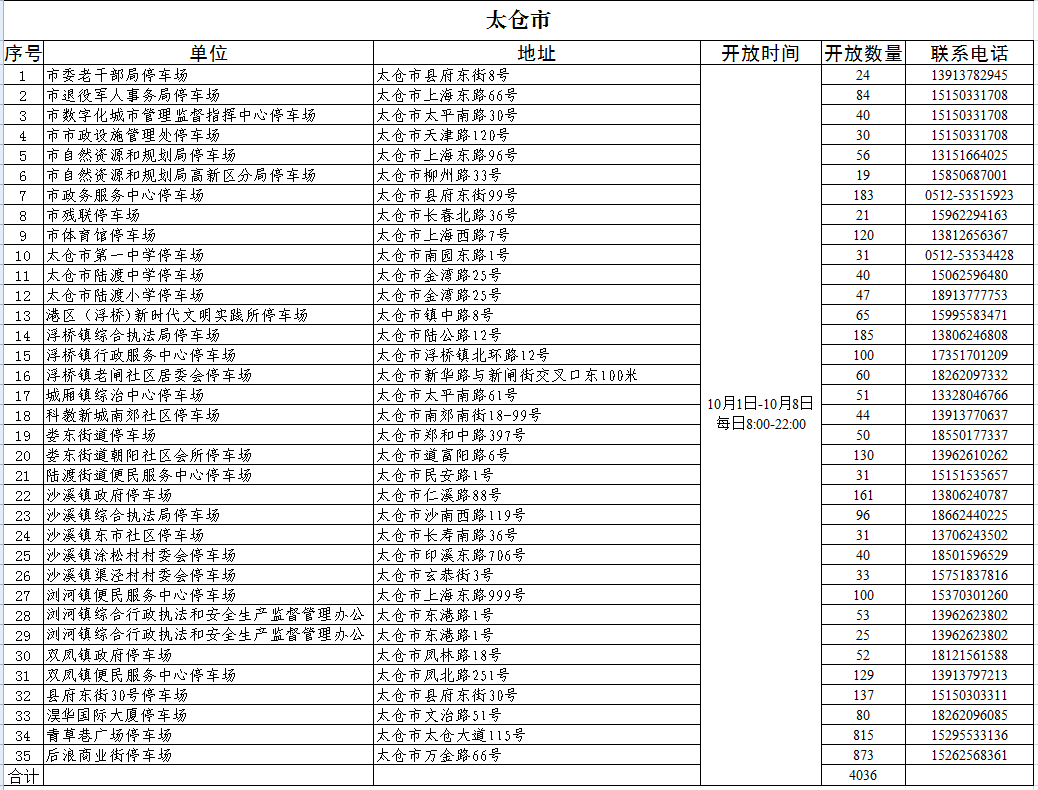 假期来临前,无锡市城管部门经前期摸排梳理,统筹调度机关单位内部停车资源,于2025年10月1日00:00至10月8日24:00(具体时段结合点位实际调整)向市民开放共享,停车免费。