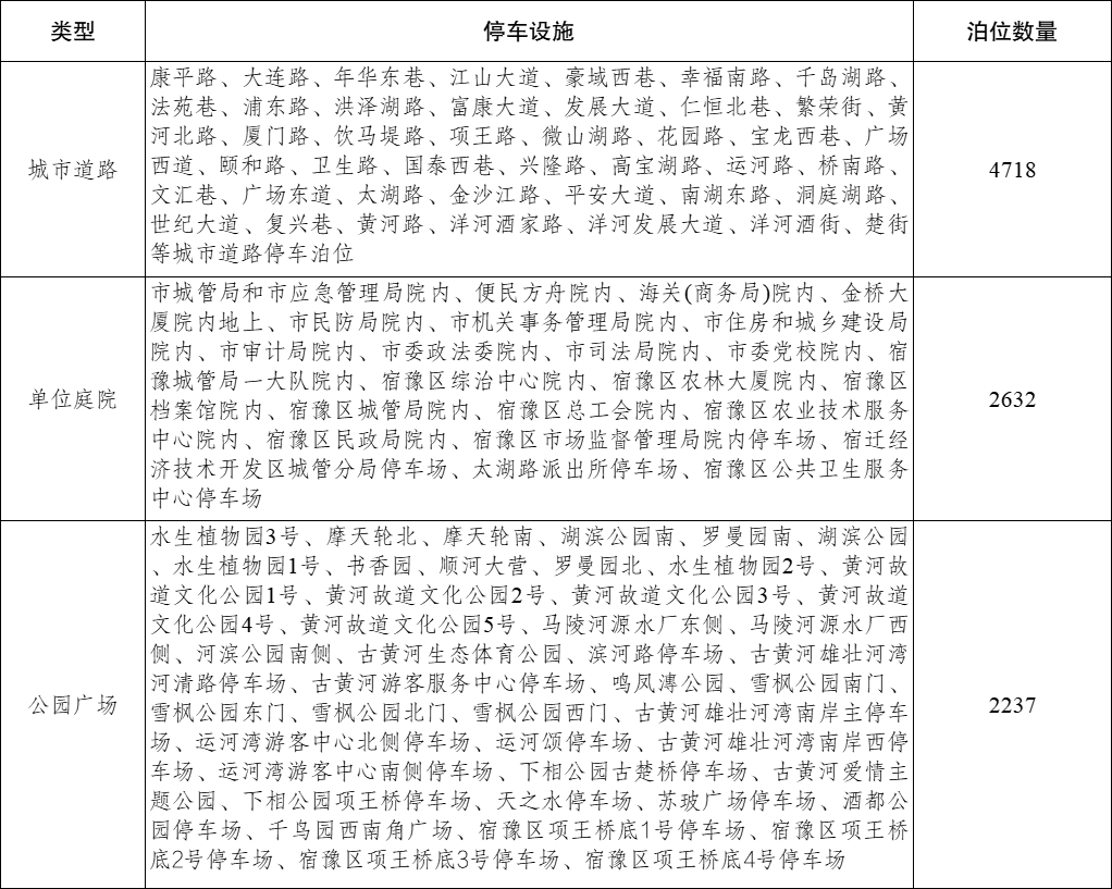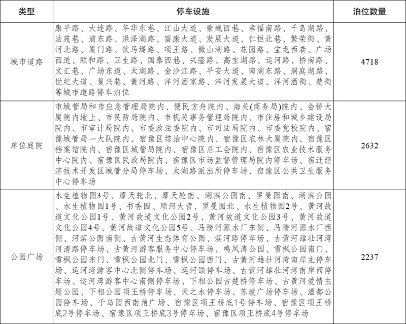 10月1日至10月8日,宿迁市区9587个政府性资源停车泊位全部向市民游客免费开放。