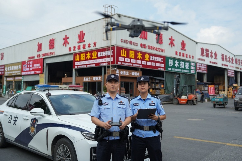 在家具装饰博览中心等大型商贸场站,雨花台分局民警运用无人机开展高空巡逻,通过“空中+地面”立体化巡防措施,有效保障节假日期间商贸场站安全平稳运营。