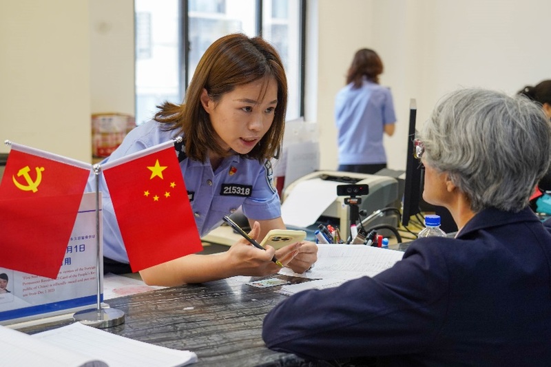 国庆期间是出入境办证“小高峰”,全市公安出入境受理点轮流对外开放,开通“境捷专窗”加快资料核验速度,为居民提供温馨舒适的办证环境。当天,中国公民出入境业务受理量超过300份,外籍人员出入境业务受理量近100份。