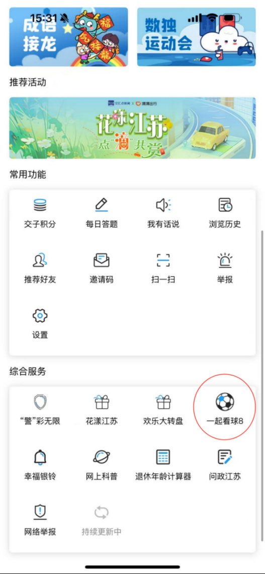 3. 完成注册后,在“头像”页面的“综合服务”专区,点击进入“一起看球8”活动。