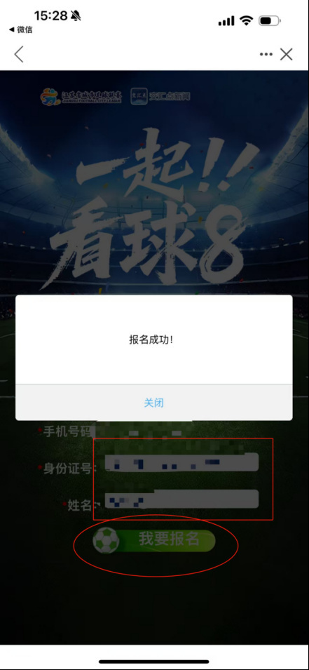 5. 关闭“报名成功”,即可获得活动专属“入场券”,比赛当天16:00后,请凭券有序入场,一人一券!