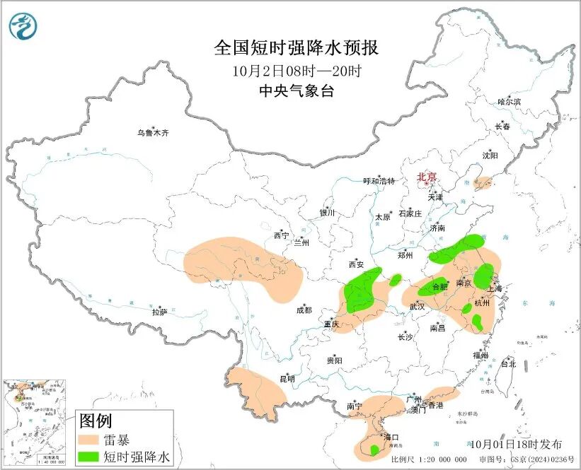 具体来看,今天夜间到明天,四川东北部、陕西南部、河南、山东东南部、安徽北部、江苏北部、湖北北部等地有大雨或暴雨,四川东北部、河南中部局地大暴雨。