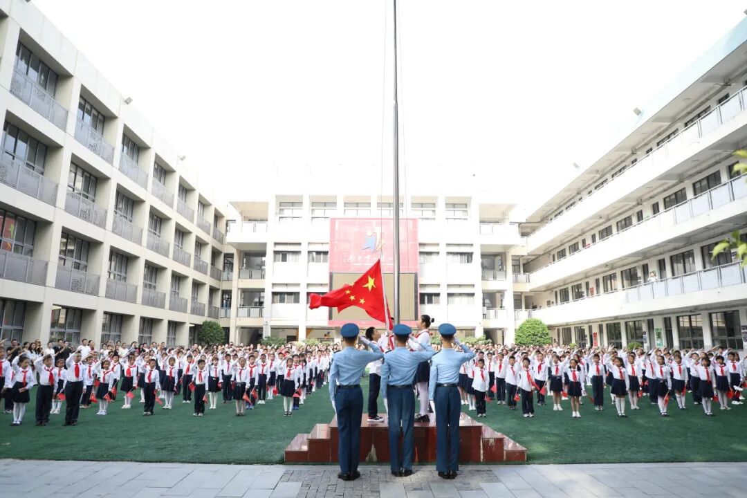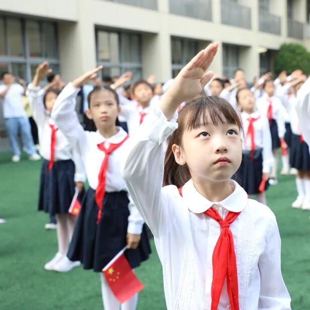 “全体立正!”随着指令下达,护旗手迈着铿锵有力的步伐,护送五星红旗走向旗杆。当嘹亮的国歌响起,红旗迎着晨光冉冉升起,在场的每一个人都挺直脊梁、凝视国旗,稚嫩的脸庞上满是庄重,家长与老师的眼中满是崇敬。