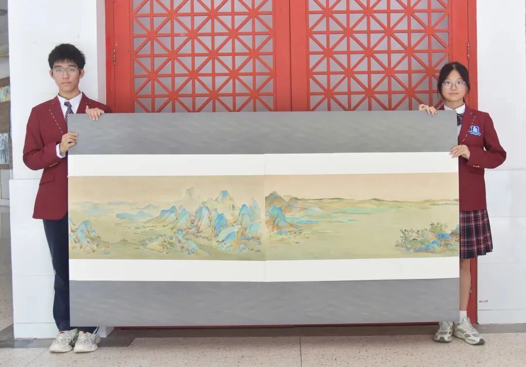 南京一中实验学校美术班的同学们以画笔为舟、色彩为帆,临摹北宋王希孟的传世名作《千里江山图》,喜迎国庆。