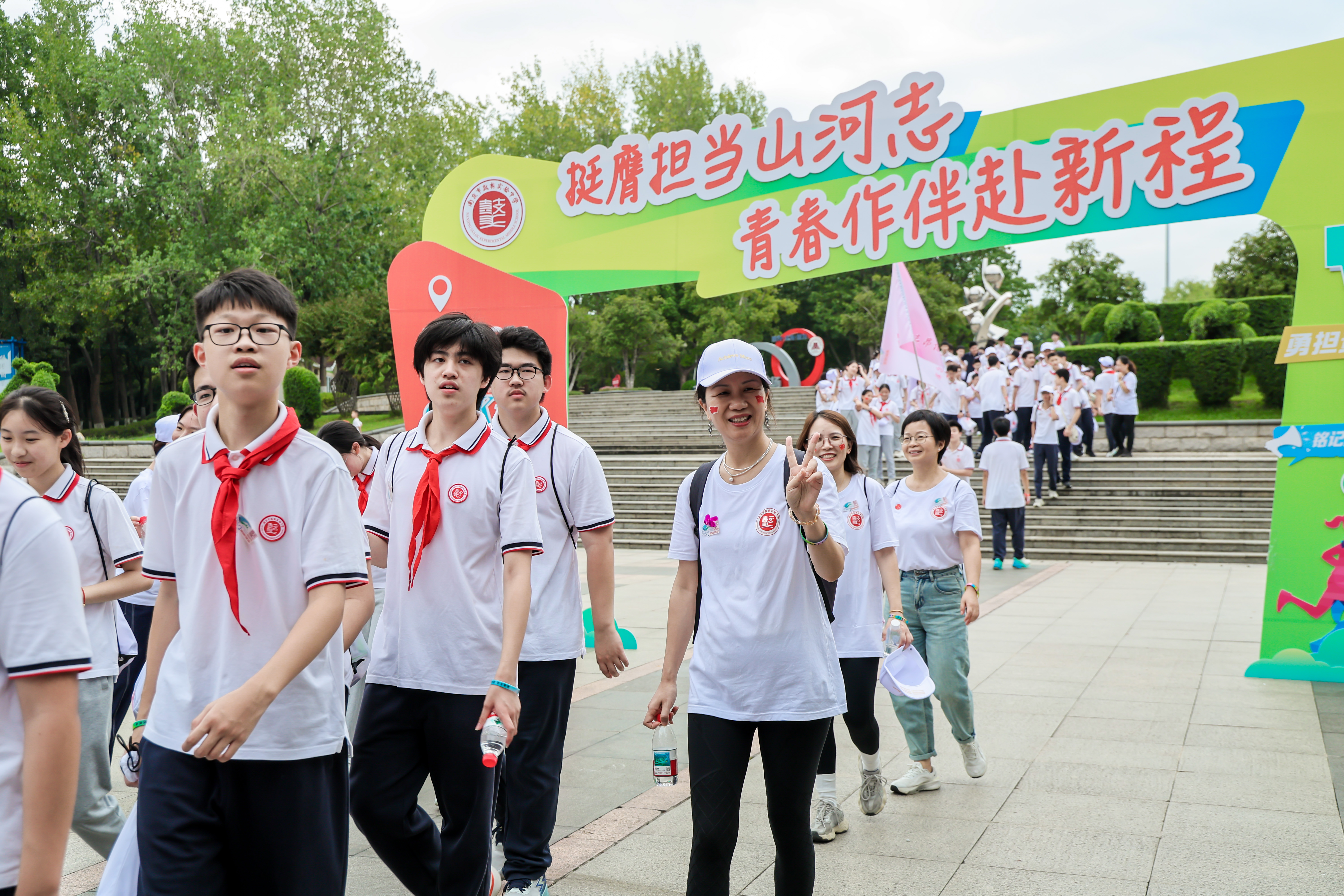 9月30日,南京市鼓楼实验中学初三年级全体师生齐聚渡江胜利纪念广场,举行“挺膺担当山河志,青春作伴赴新程”青春仪式暨“弘毅行”励志徒步活动。从渡江胜利纪念广场到绿博园,同学们在跨越6公里的徒步中,重温峥嵘岁月,凝聚奋进力量,告白祖国母亲。