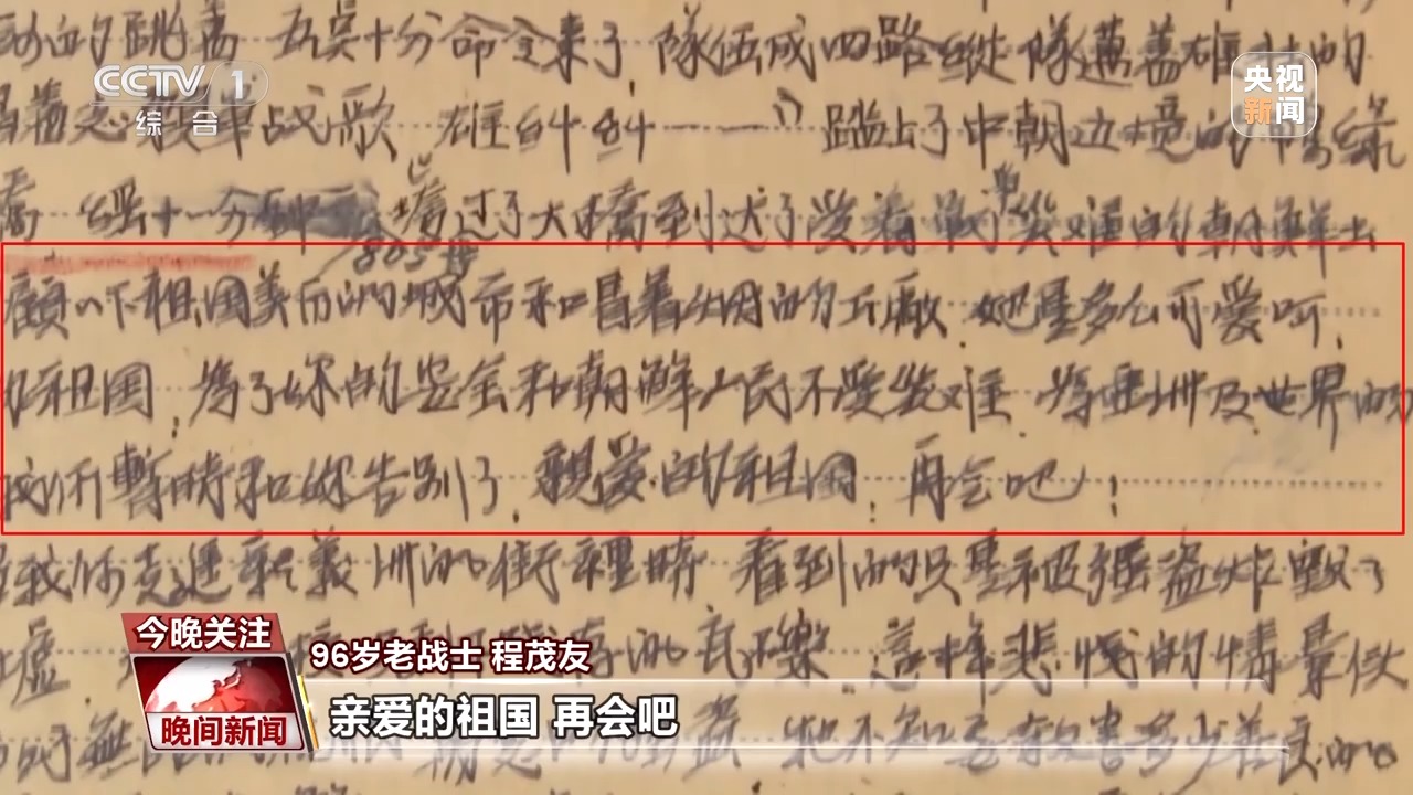 庆祝共和国华诞之时,也是深情缅怀历史、从历史中获得启迪之时。70多年前,一位21岁的年轻战士在踏上抗美援朝战场前,曾在日记中写下深情的话向祖国母亲告白。如今,写下这段热血文字的小战士已经是一位96岁高龄的老战士,他叫程茂友。