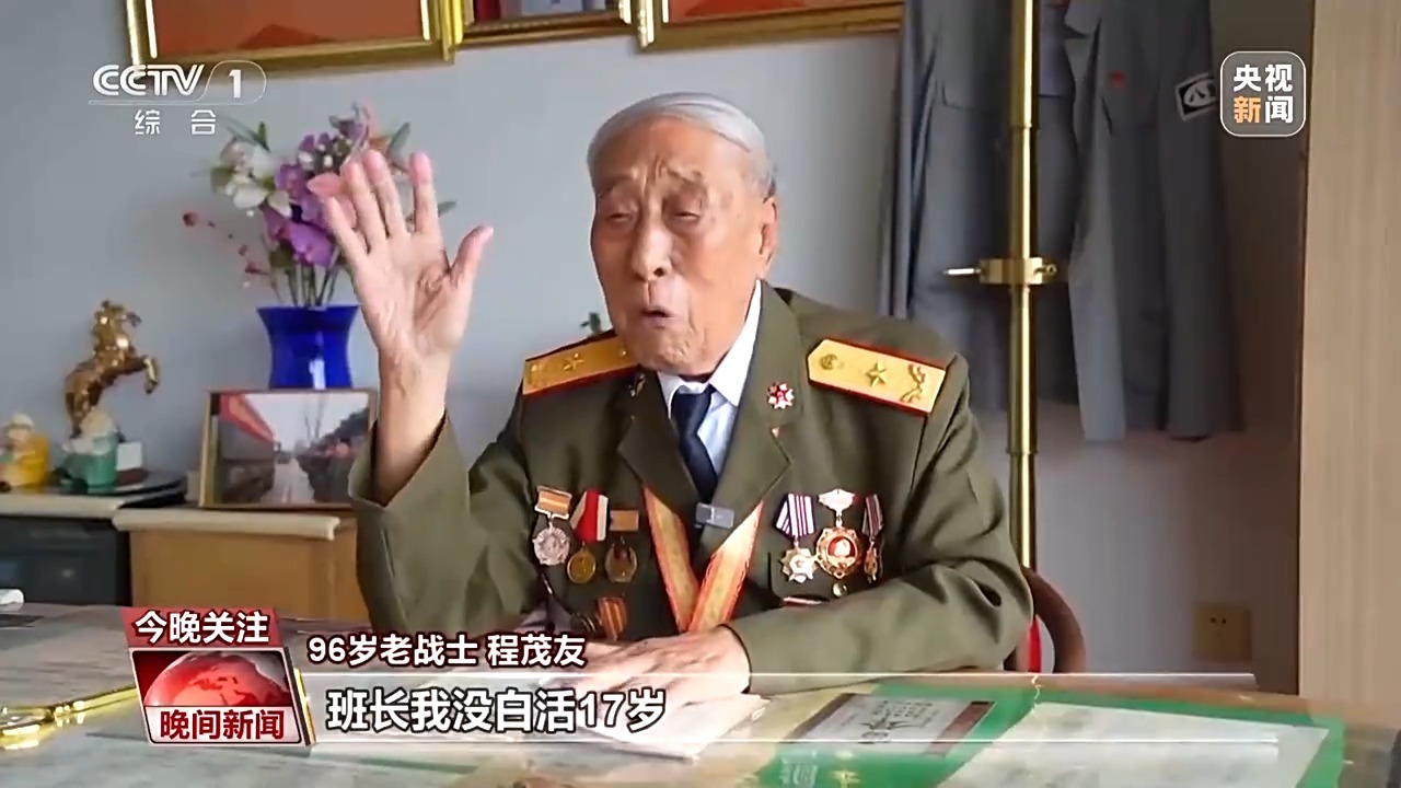 96岁老战士 程茂友:要是没有前面冲锋的战士牺牲有后面的胜利吗?没有牺牲其他的同志,能活下来吗?上天安门观礼是很高的荣誉了,国家不是给予我的,而是给予千千万万牺牲烈士的,他们是真正的英雄。