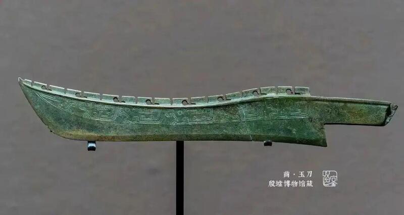 在河南安阳殷墟博物馆展厅里,出土于殷墟亚长墓的商代玉刀同样吸睛。敖光“龙牙刀”的设计正是参考商代玉刀。