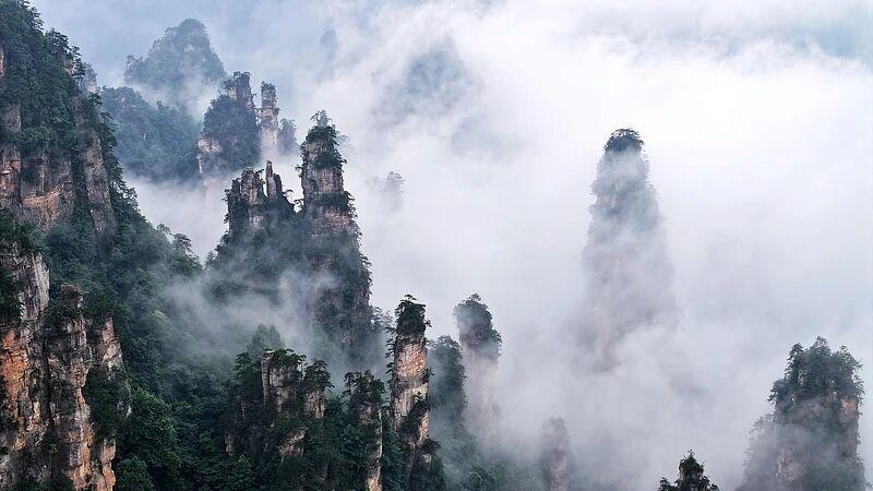 除了杭州的柔情,电影里的奇幻秘境场景,灵感来自湖南张家界。这片被联合国教科文组织认定为“世界自然遗产”的土地,用三千奇峰、八百秀水,为动画团队提供了最灵动的创作素材。