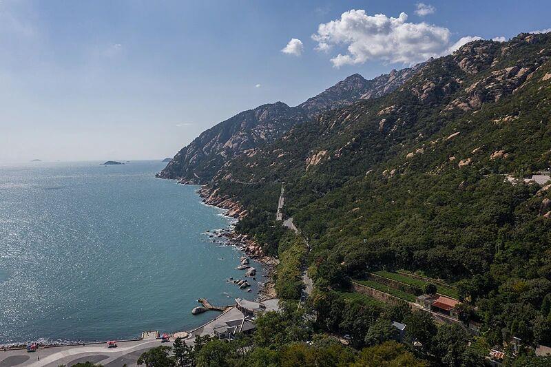 除了人文景观,崂山自然风貌也同样值得打卡游玩。沿着崂山太清宫游览线登山,一侧是苍翠山林,一侧是蔚蓝大海,山海相连的壮阔尽收眼底。