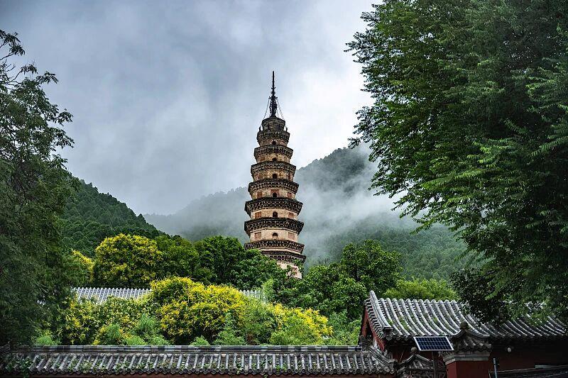 佛光寺祖师塔是唐代密檐式砖塔,塔身线条简洁流畅,塔檐层层叠叠,站在塔下仰望,仿佛能看见动画里小妖怪们围绕塔身穿梭的身影。