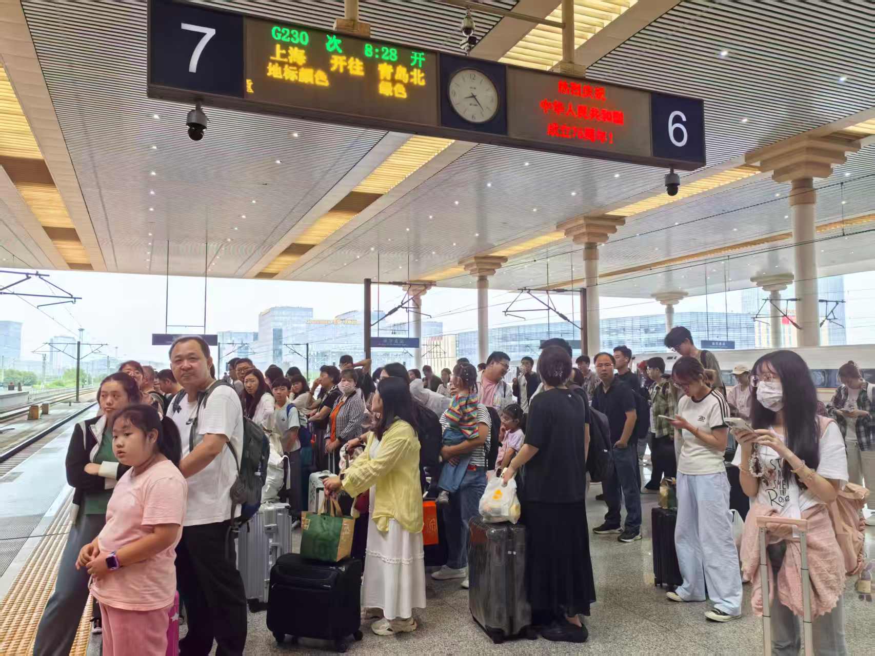 国庆中秋假期,江苏铁路多措并举,以优质的服务、贴心的举措护航旅客出行。省内各大车站针对性制定大客流旅客安全卡控措施,增派人员力量重点盯控旅客乘降组织和站台候车安全;“苏小铁”青年志愿服务团队深入服务台、进站口等关键岗位,加强旅客宣传引导,提供重点旅客服务;南京南、徐州东等站加强公共交通接驳组织,协调地方交通部门,根据客流情况加密地铁和公交接驳班次、延长运营时间,提升旅客疏解能力。