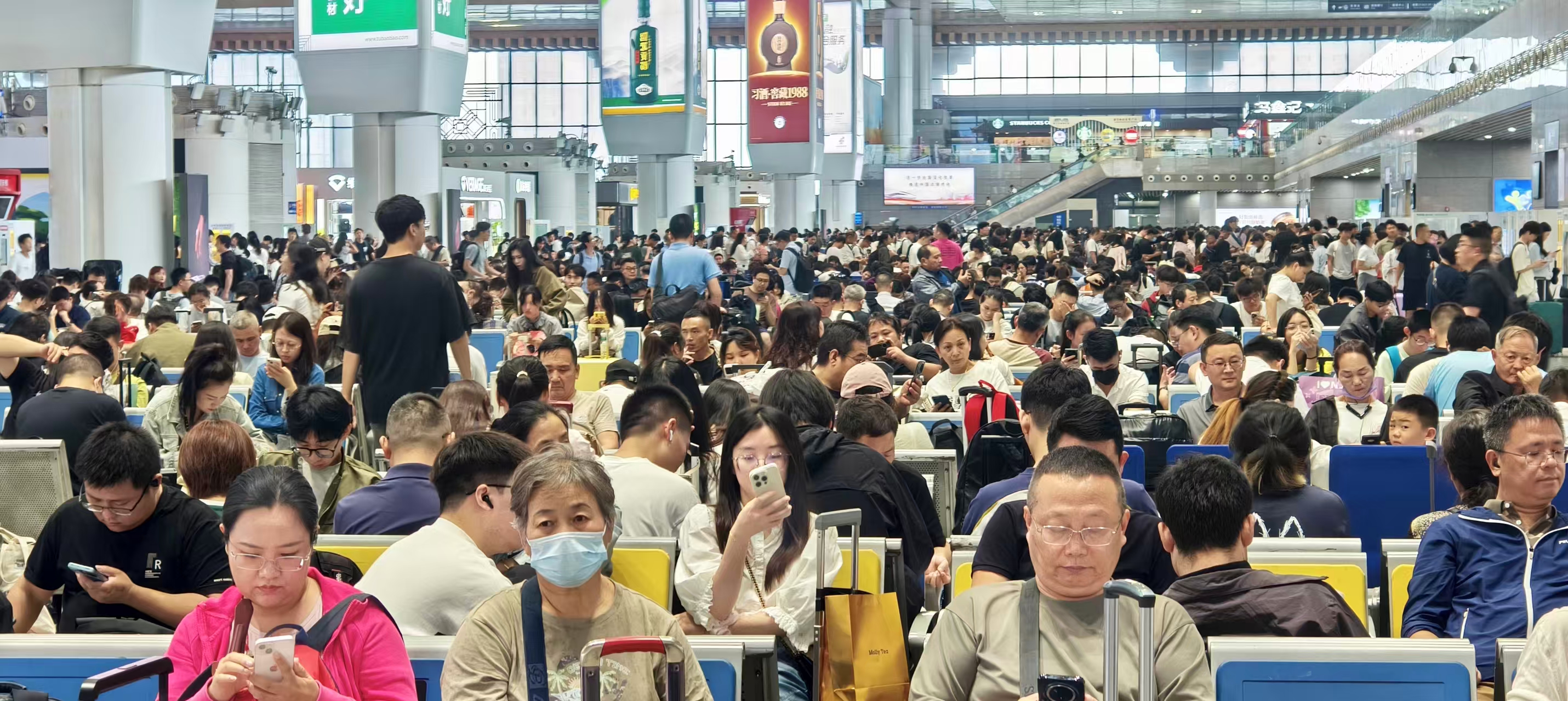 交汇点讯 国庆中秋“喜相逢”!10月1日,江苏铁路迎来今年国庆中秋假期首个客流高峰,当天全省铁路累计发送旅客133.2万人次,创历年国庆新高,排名长三角第一,同比增长7.3%。南京地区两大车站10月1日发送旅客接近36万人次,盐城、南通、江阴等站也都迎来客流高峰,增速均超过10%。