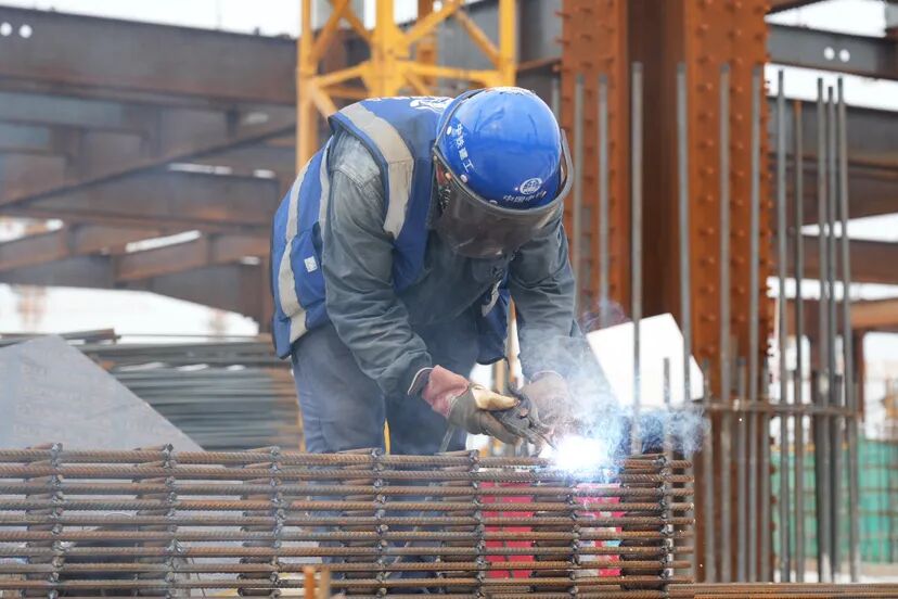 记者走进中铁建工集团负责的站房3标施工区域,刚踏入现场,塔吊林立的壮观景象便映入眼帘,闪烁的焊接灯光在工地各处跳动,机器轰鸣声与工人作业的吆喝声交织在一起,施工队伍正全速推进工程进度。