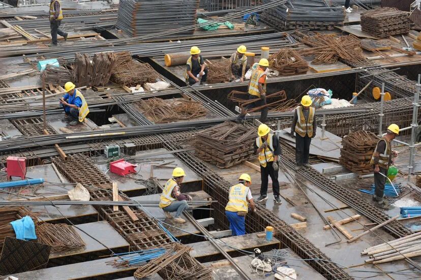脚下纵横交错的钢筋骨架