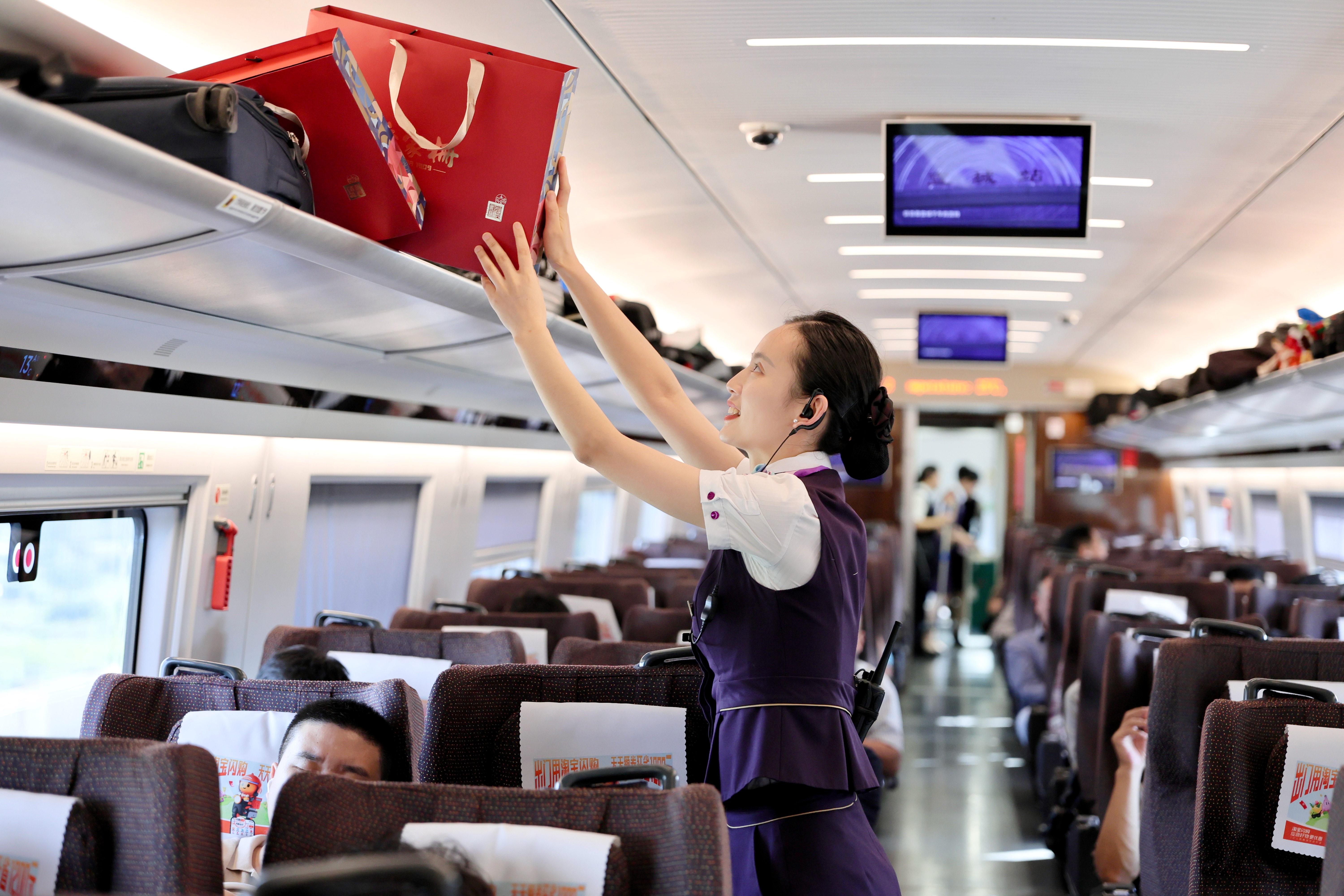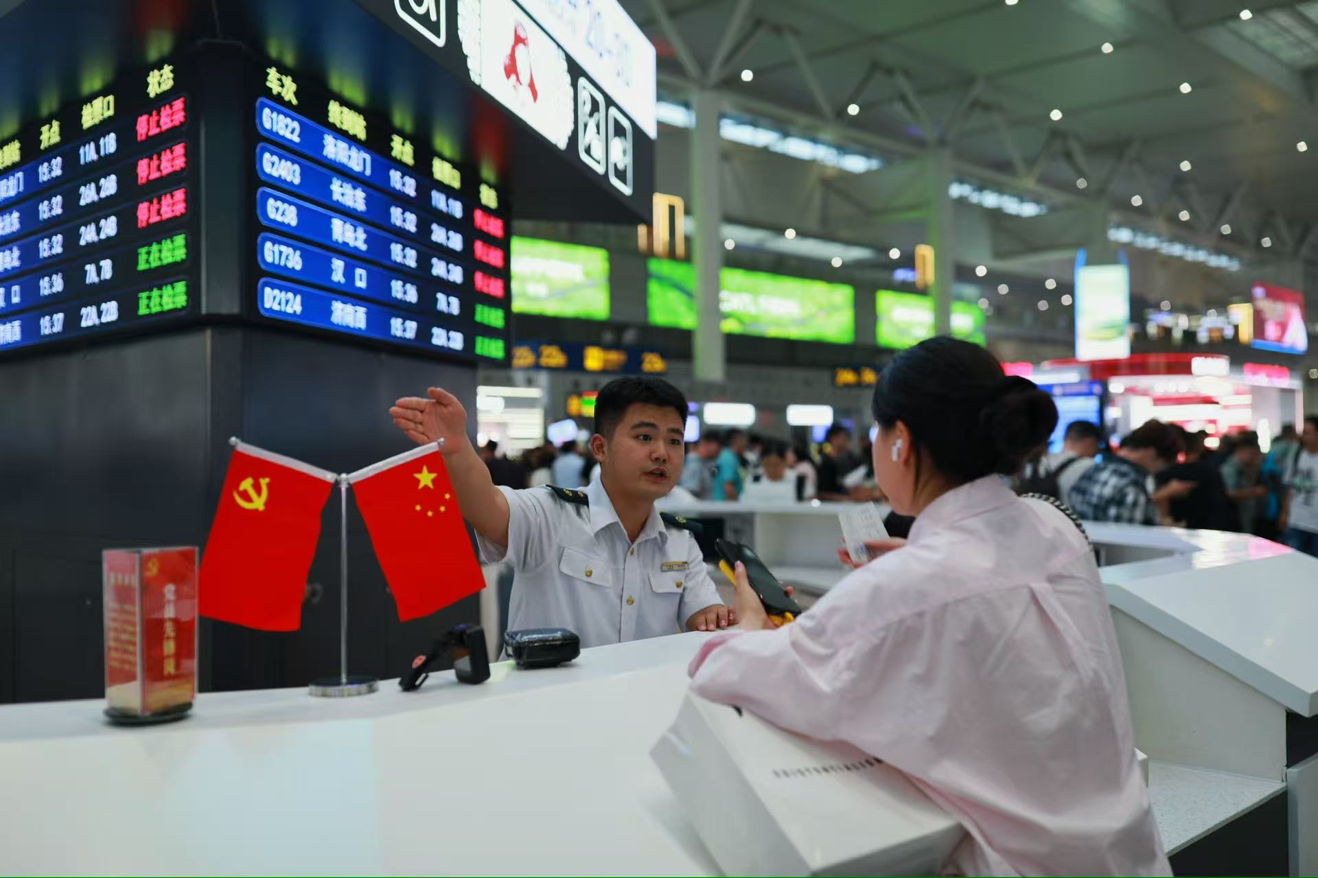 假日期间,铁路部门不仅在运力上做足保障,更在服务品质和出行体验上用心用力。上海站、上海虹桥、上海松江站在各站区悬挂国旗,在电子显示屏上播放国庆标语,营造浓厚节日氛围;增派工作人员和志愿力量,在电梯口、站台、候车室等关键点位加强引导与帮扶;开设上海虹桥站“网红”售票员游园特色服务窗,新增两处充电吧台,使站内充电吧台总数达到四处,满足旅客便捷充电需求;联合医疗单位在上海南站开展义诊活动,组织开展国庆主题快闪活动和“唐韵中秋”系列演出活动,为旅客增添节日温馨与欢乐。