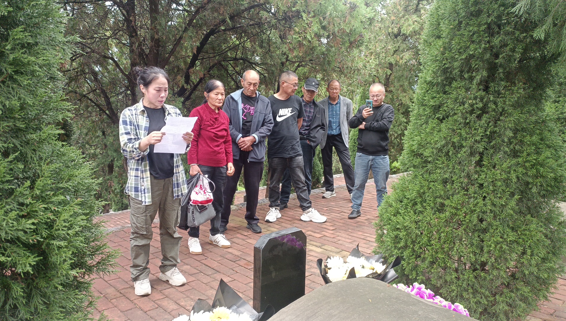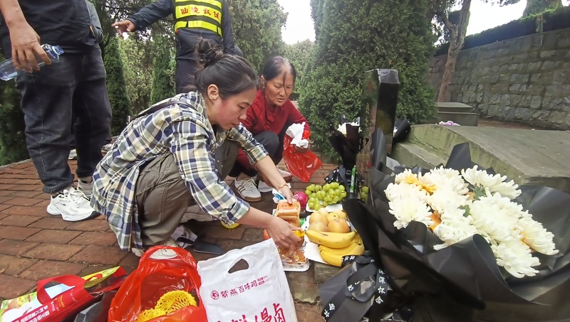 “在国庆与中秋这个家国团圆的日子,我们全家怀着无比崇敬而又复杂的心情站在这里。76年来,我们第一次祭奠大伯徐德贵烈士,是在跨越了漫长的时空阻隔后,最终以这样一种特殊的方式‘团圆’了。”祭奠仪式上,烈士侄女徐春梅数次哽咽,“76年后,我们终于找到您!大伯,您知道吗?自您离家后,奶奶每天都坐在村口的老槐树下张望,直到双眼模糊,再也看不清远方的路。您的弟弟妹妹,也就是我的父亲和姑姑们,是在‘有一个英雄大哥’的荣光与‘再也见不到大哥’的悲痛中长大的。找到您,是我们一家三代人的执念。”