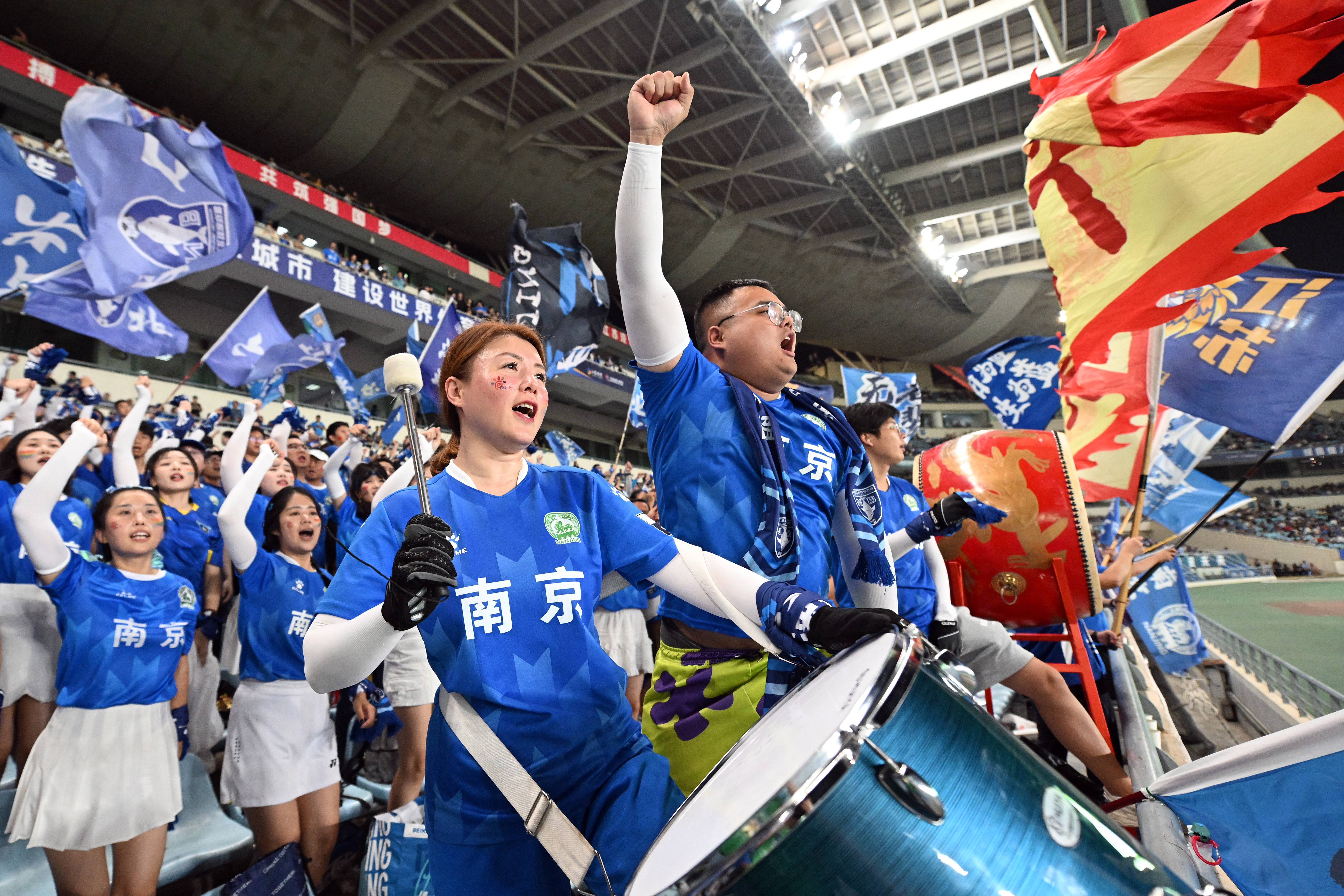 “绿茵健儿会金陵 宁连同心向未来”“打造足球重点城市 建设世界体育名城”,球场周围被各种标语横幅包装得氛围满满,南京球迷会挥舞的南京队队旗醒目而霸气。值得一提的是,银杏里文化艺术街区、鼓楼水岸·南艺后街的U艺广场、京东MALL南京大明路店、南京弘阳广场等南京各大商场、特色街区精心准备了观赛“第二现场”,市民们参与活动享受美食的同时,为南京队加油呐喊,从开场嗨到终场。