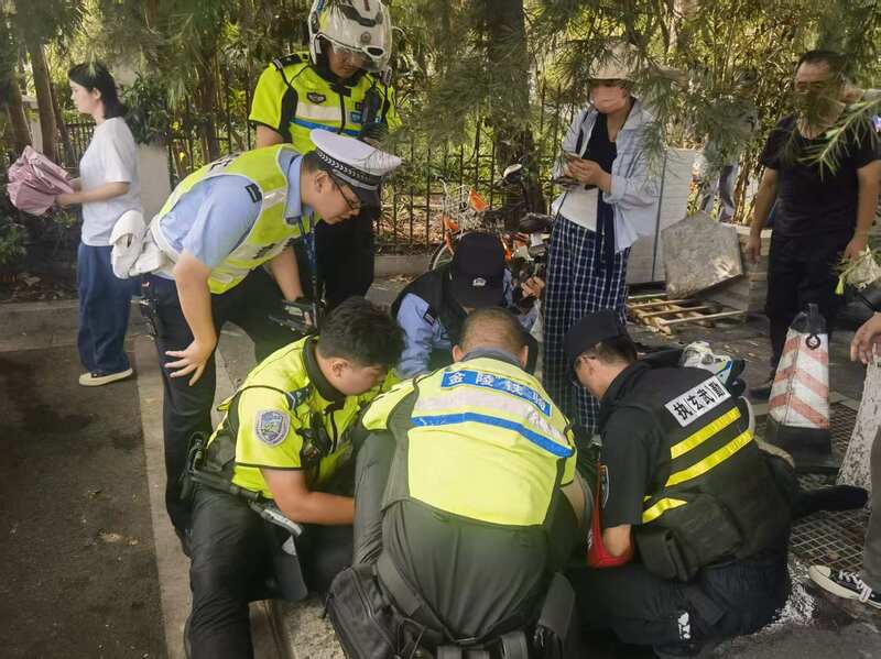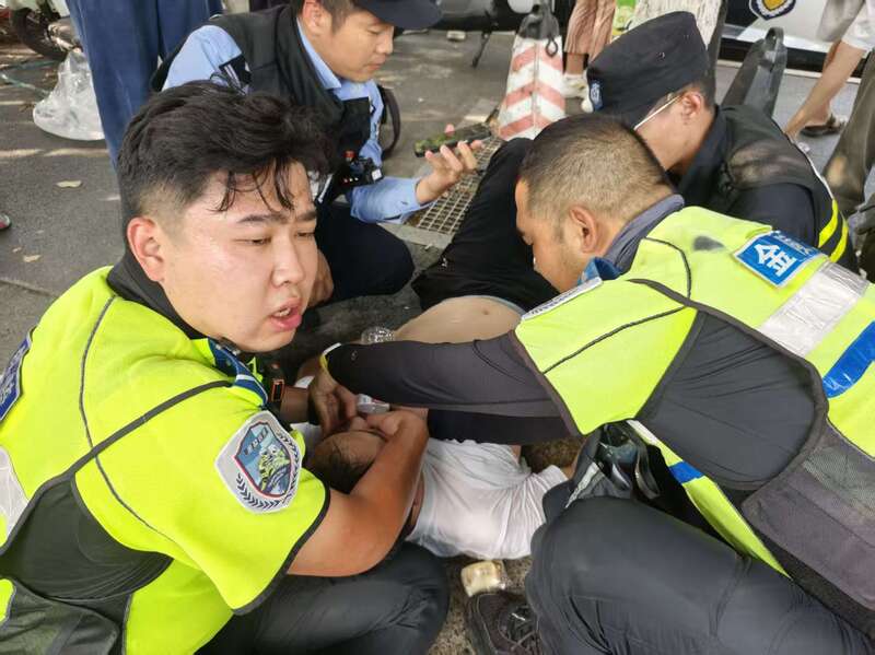其间,附近警务站警力和现场群众齐心协力,开展急救,帮他进行胸口擦拭并掐虎口。路对面的巡逻民警吴懿飞随后赶往现场,通过当事人电话与其在美龄宫游玩的家人取得联系。在救护车到达后,铁骑民警又全程护送游客黄某至中西医结合医院进行救治,目前该游客已脱离生命危险。