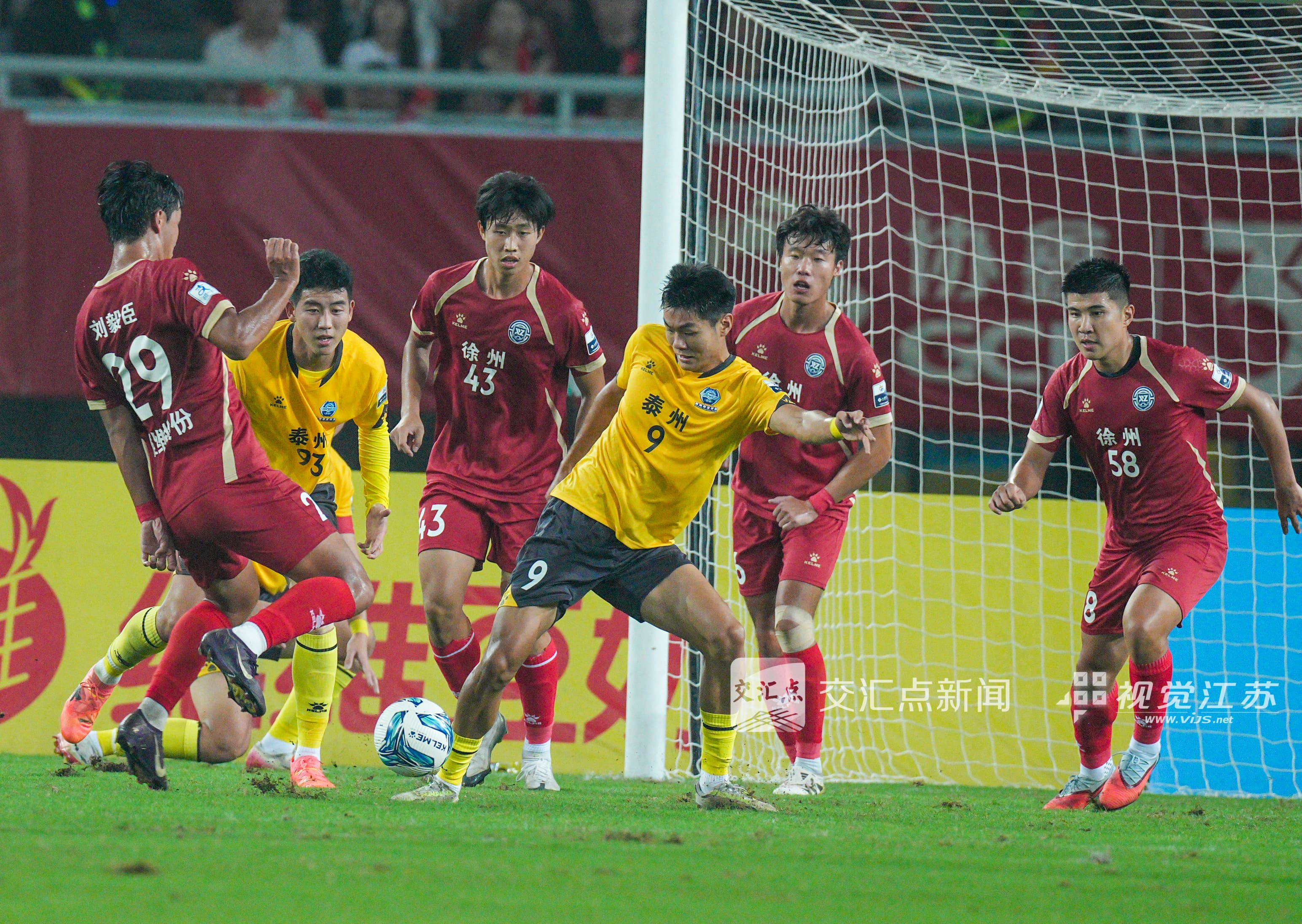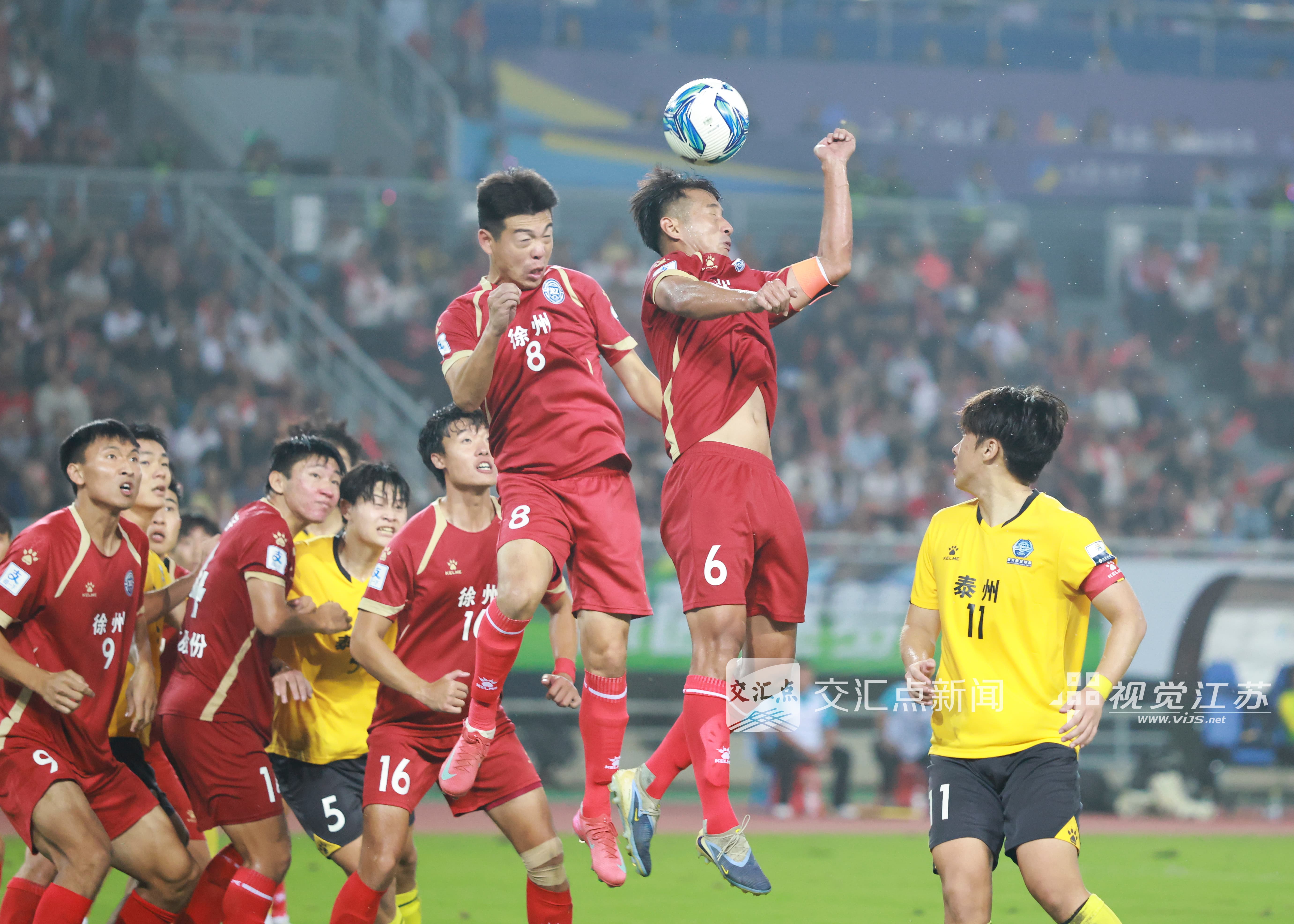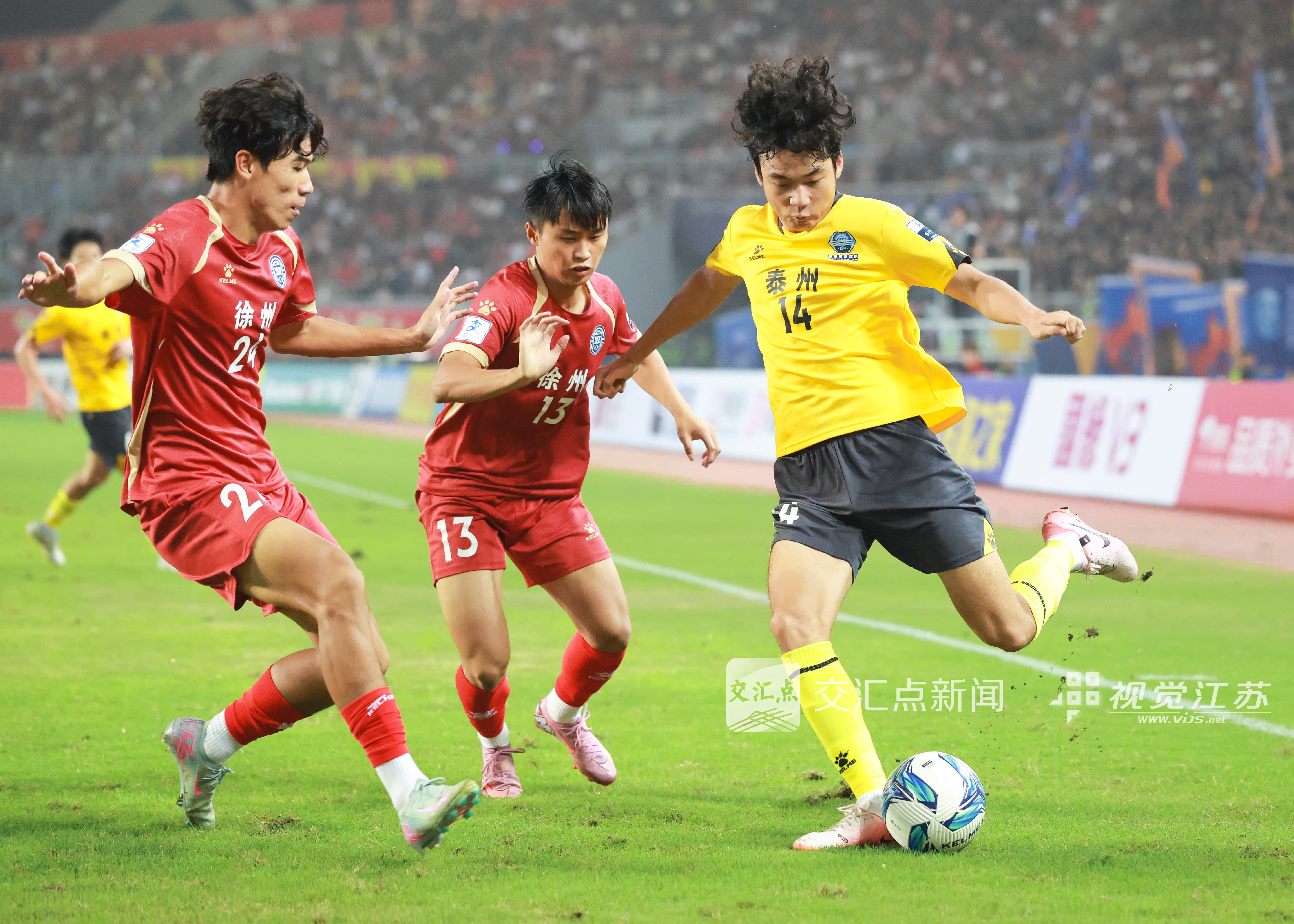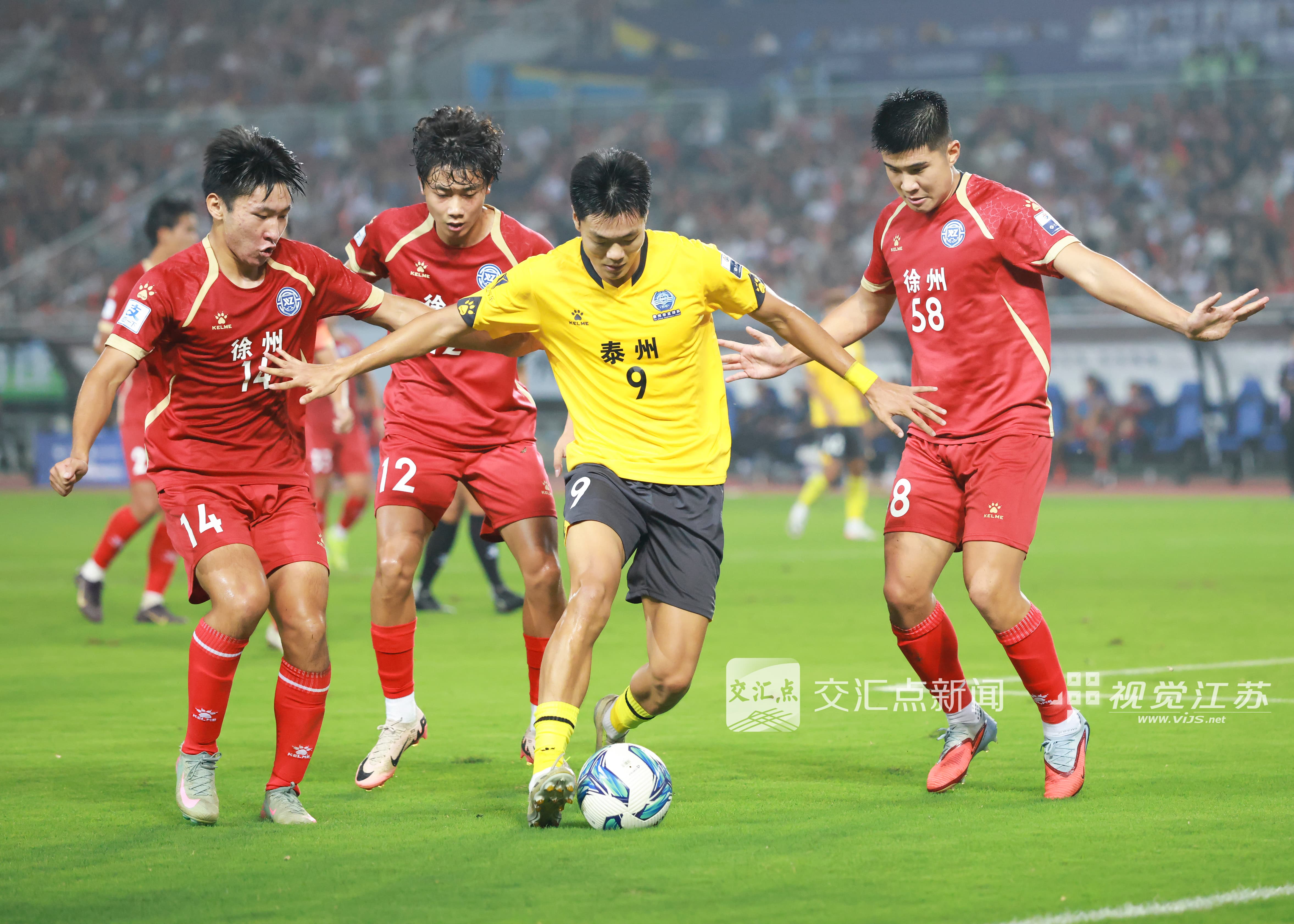 10月5日19:35,“苏超”联赛四分之一决赛第二场,泰州队客场在徐州奥体中心体育场挑战徐州队。经过90多分钟的鏖战,在30336名观众的见证下,泰州队点球大战中四罚四中,最终5比3力克徐州队,晋级四强。