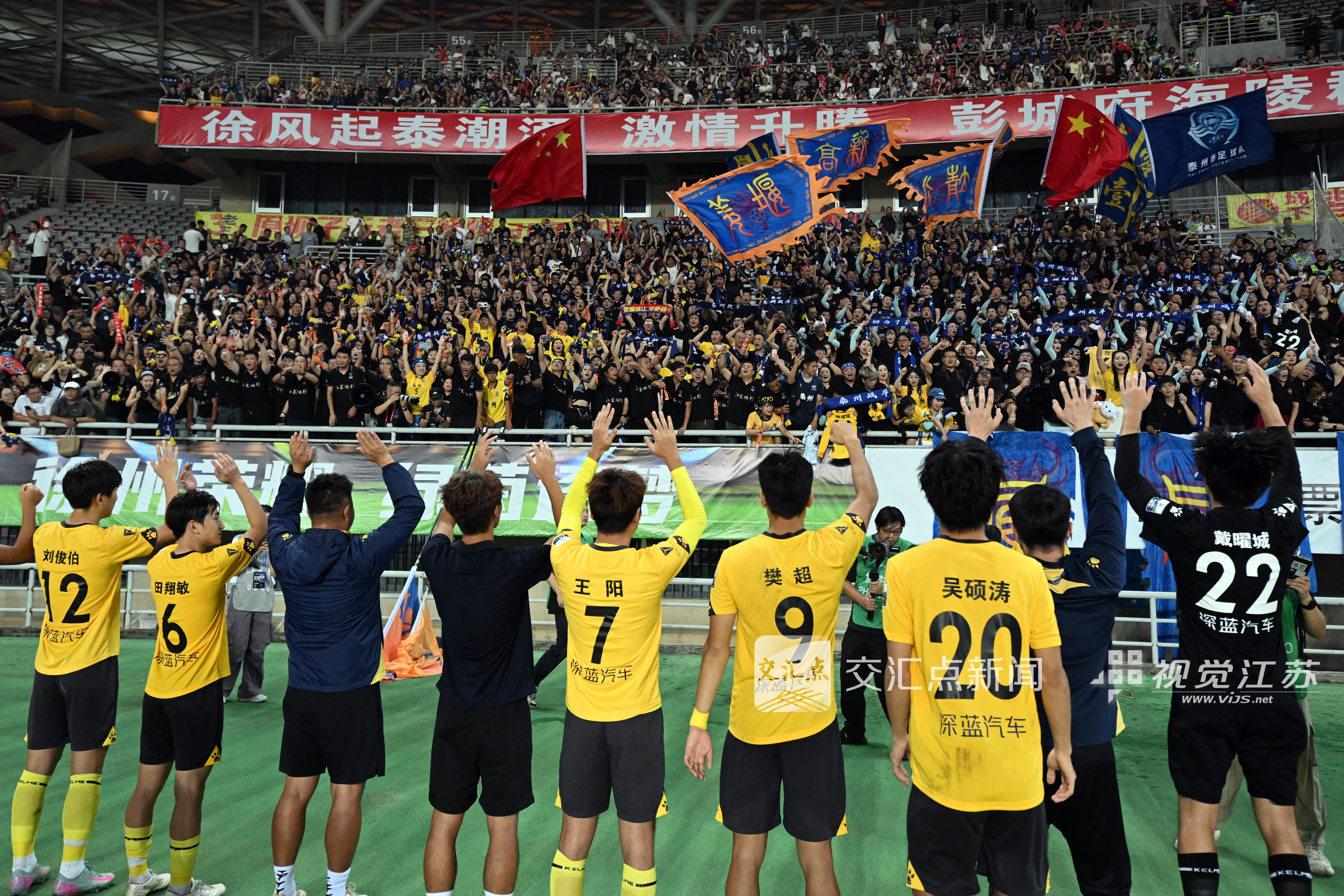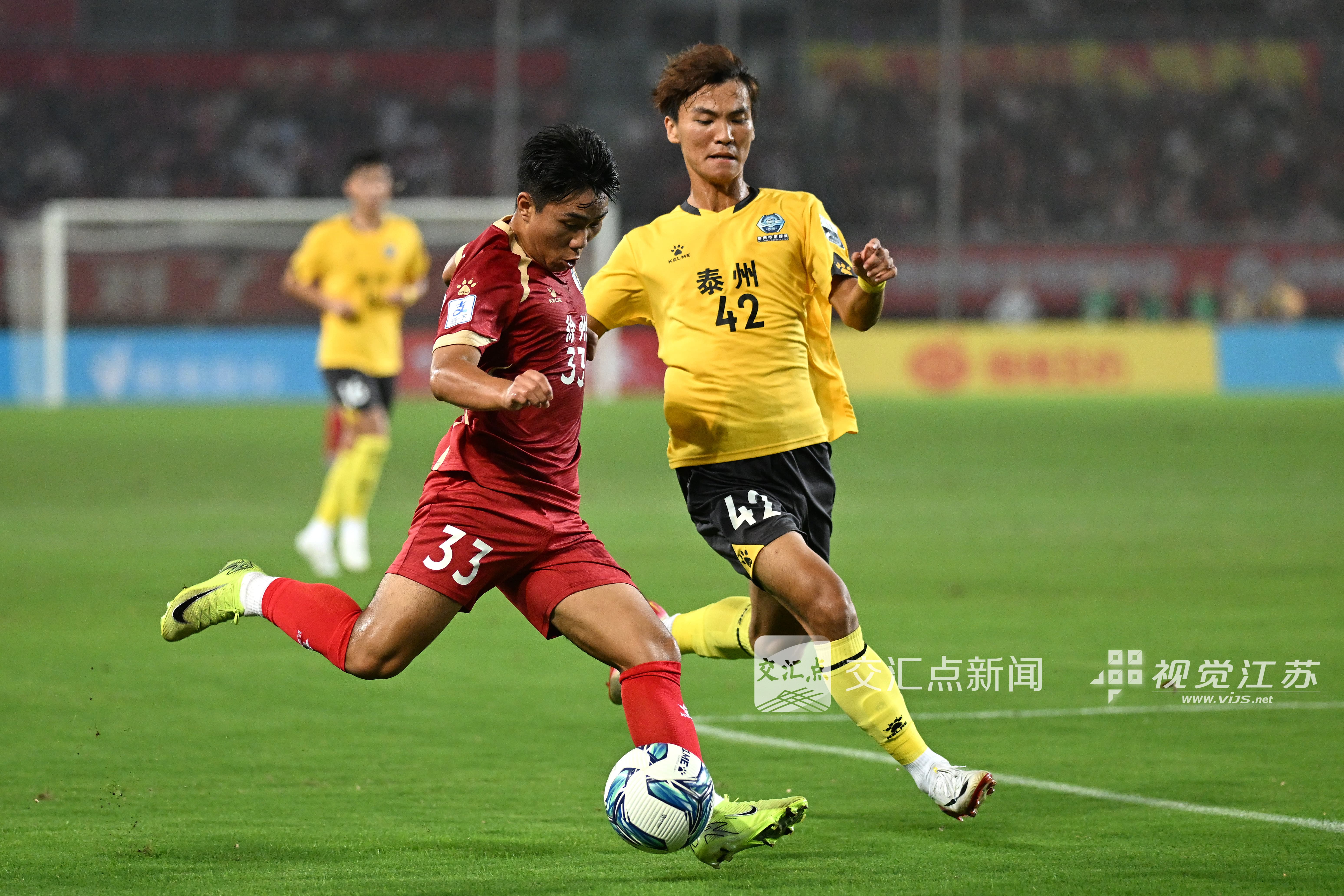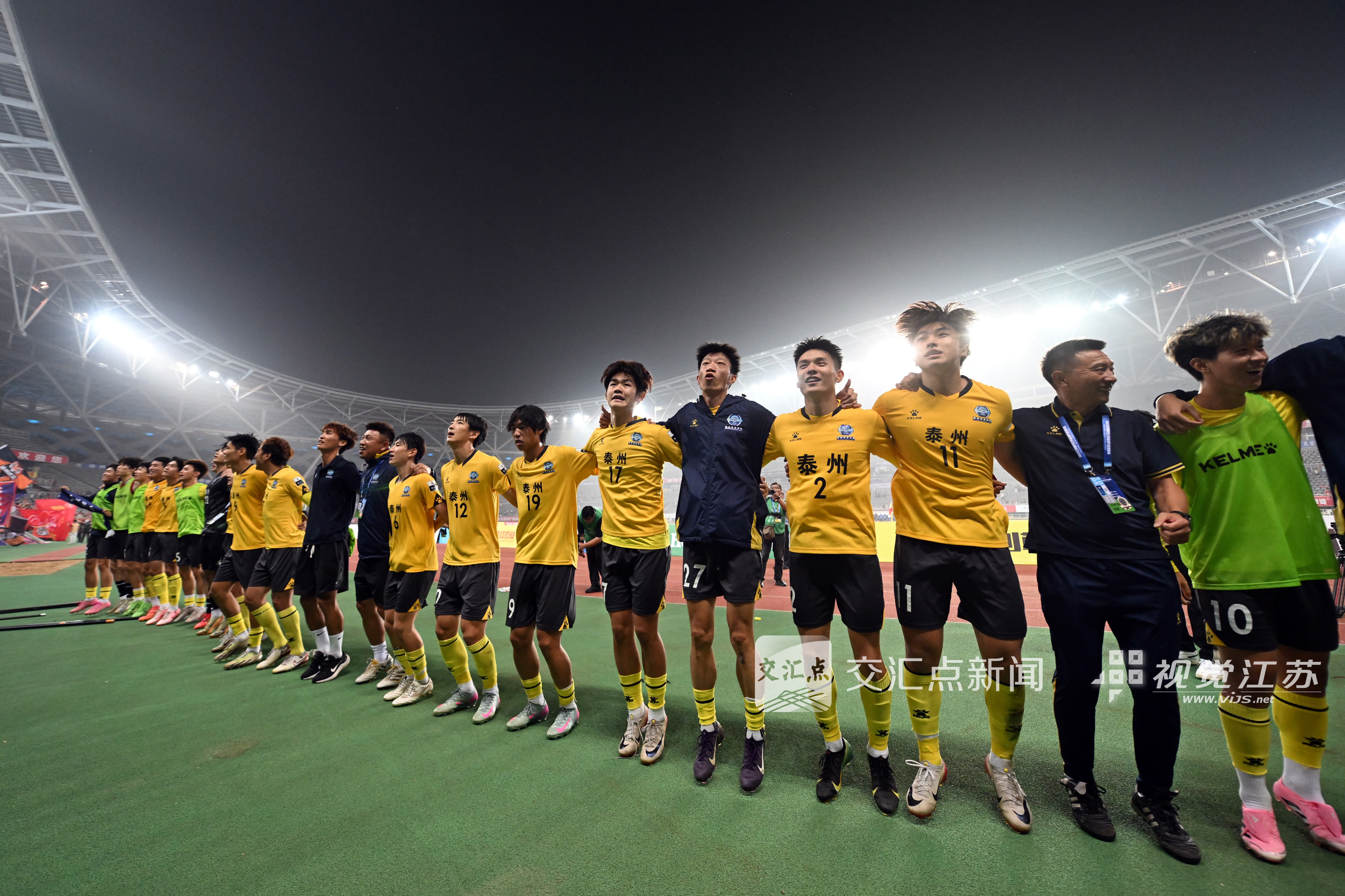 10月5日19:35,“苏超”联赛四分之一决赛第二场,泰州队客场在徐州奥体中心体育场挑战徐州队。经过90多分钟的鏖战,在30336名观众的见证下,泰州队点球大战中四罚四中,最终5比3力克徐州队,晋级四强。