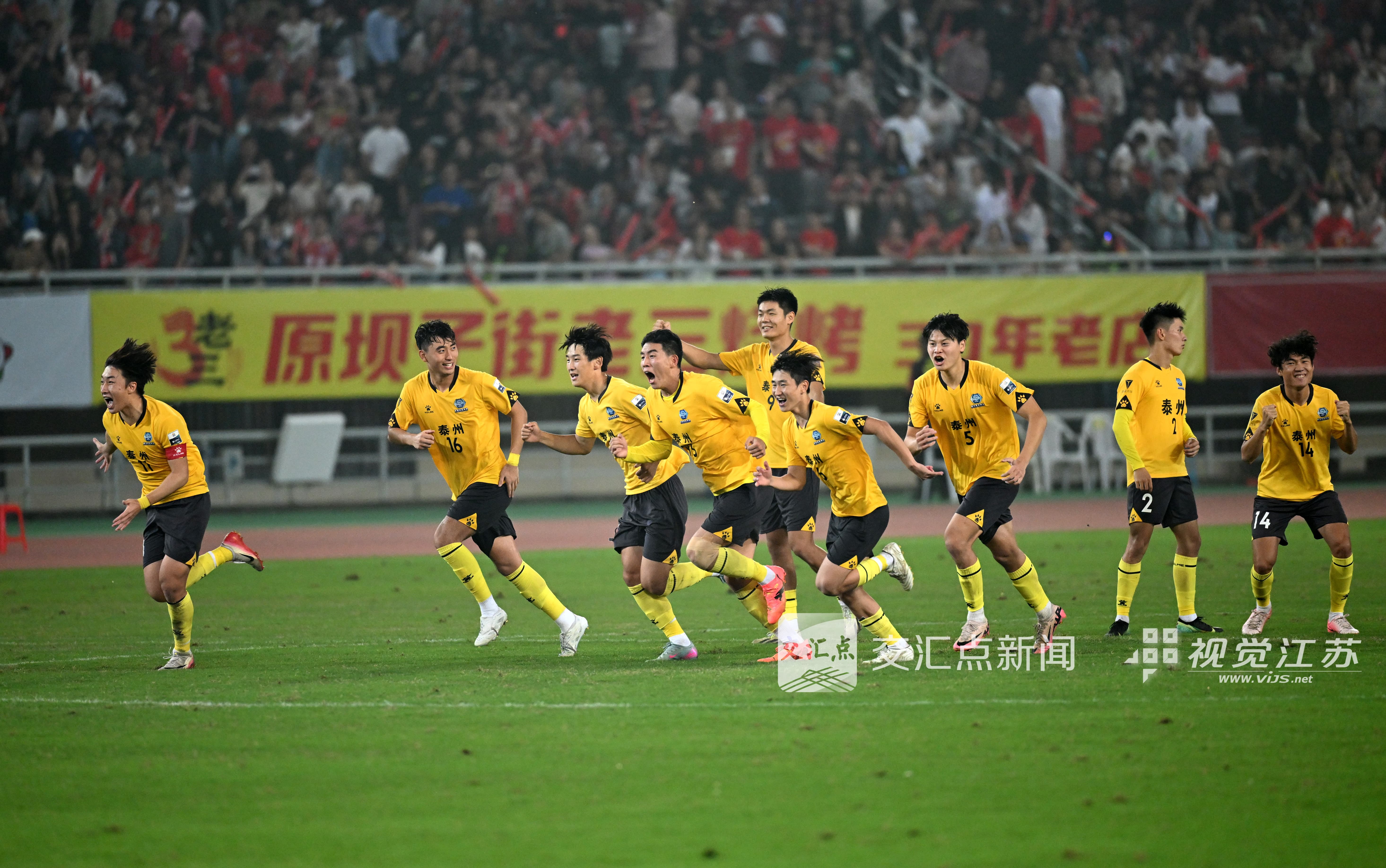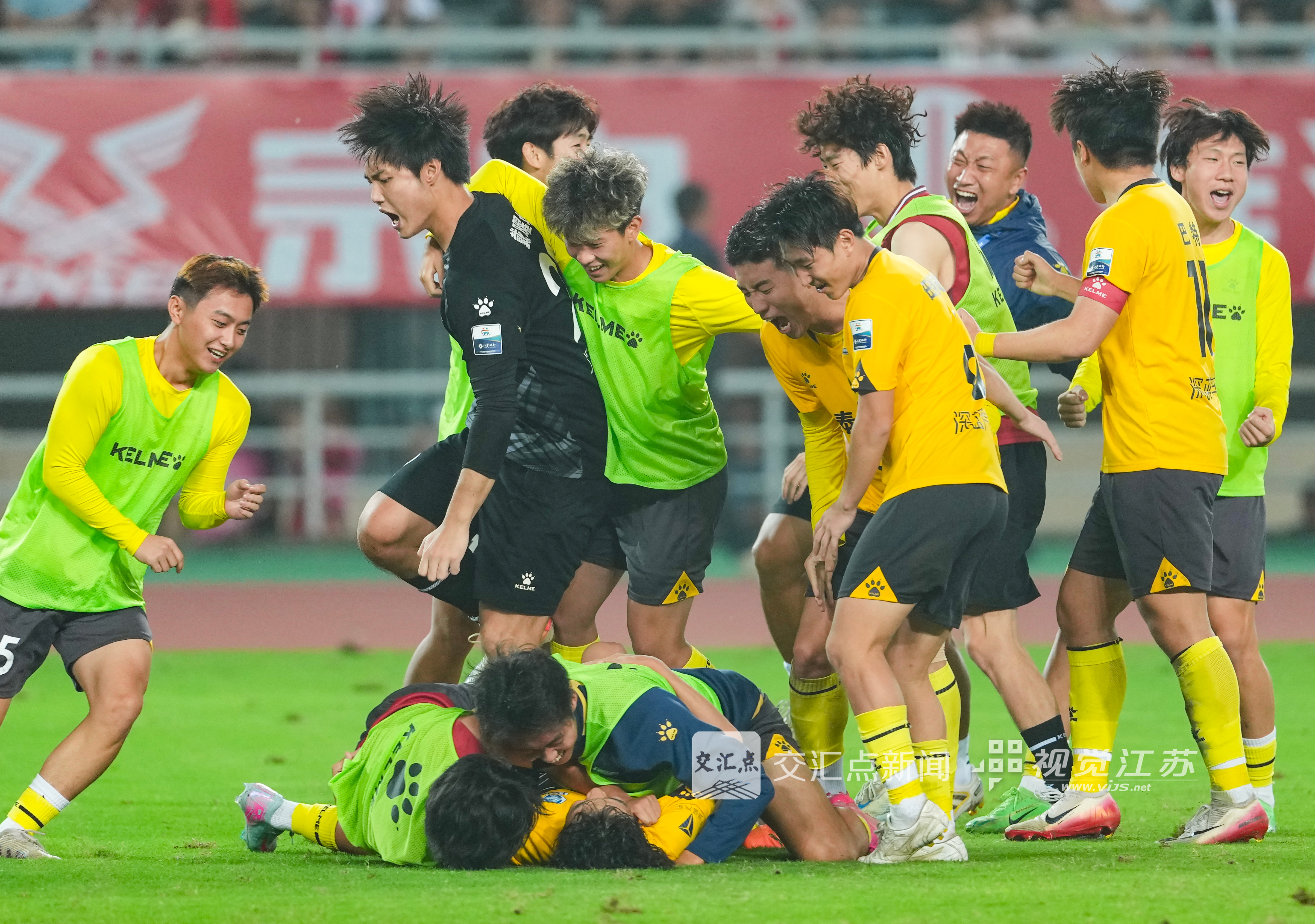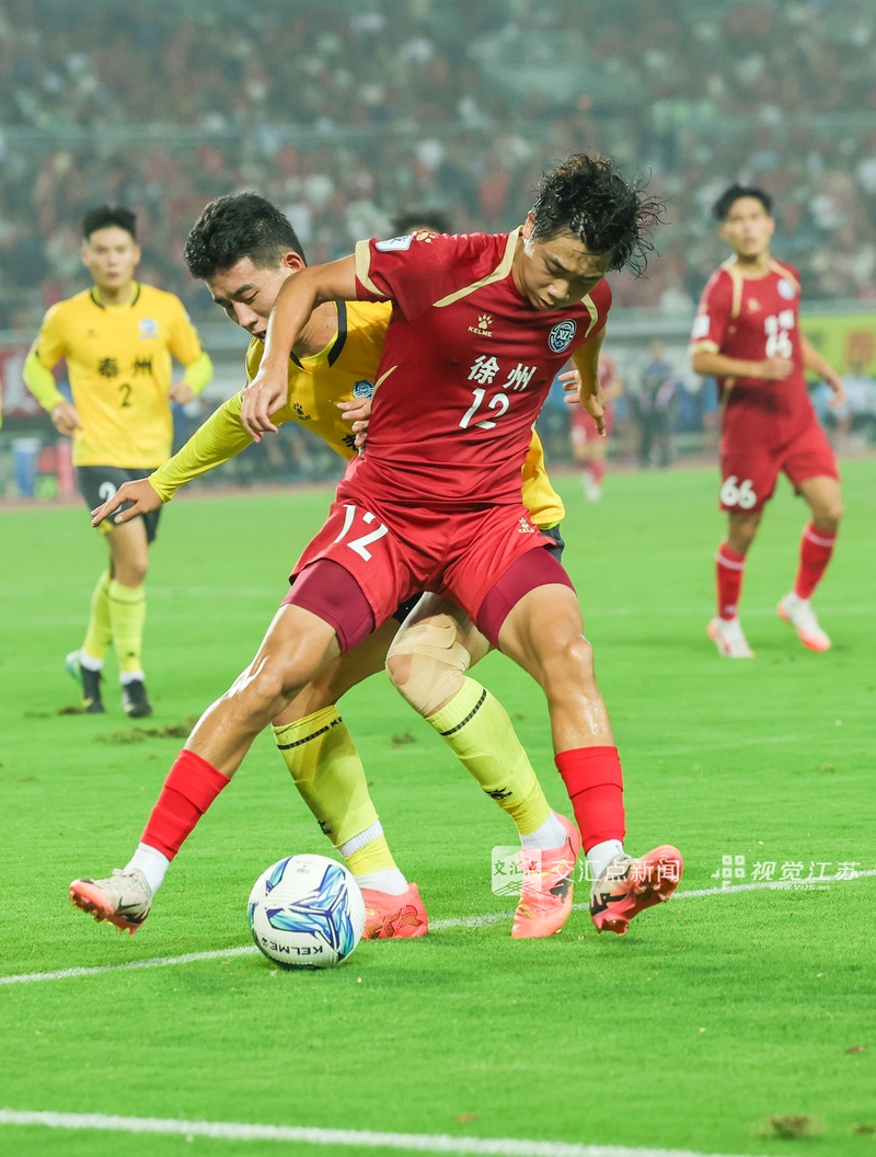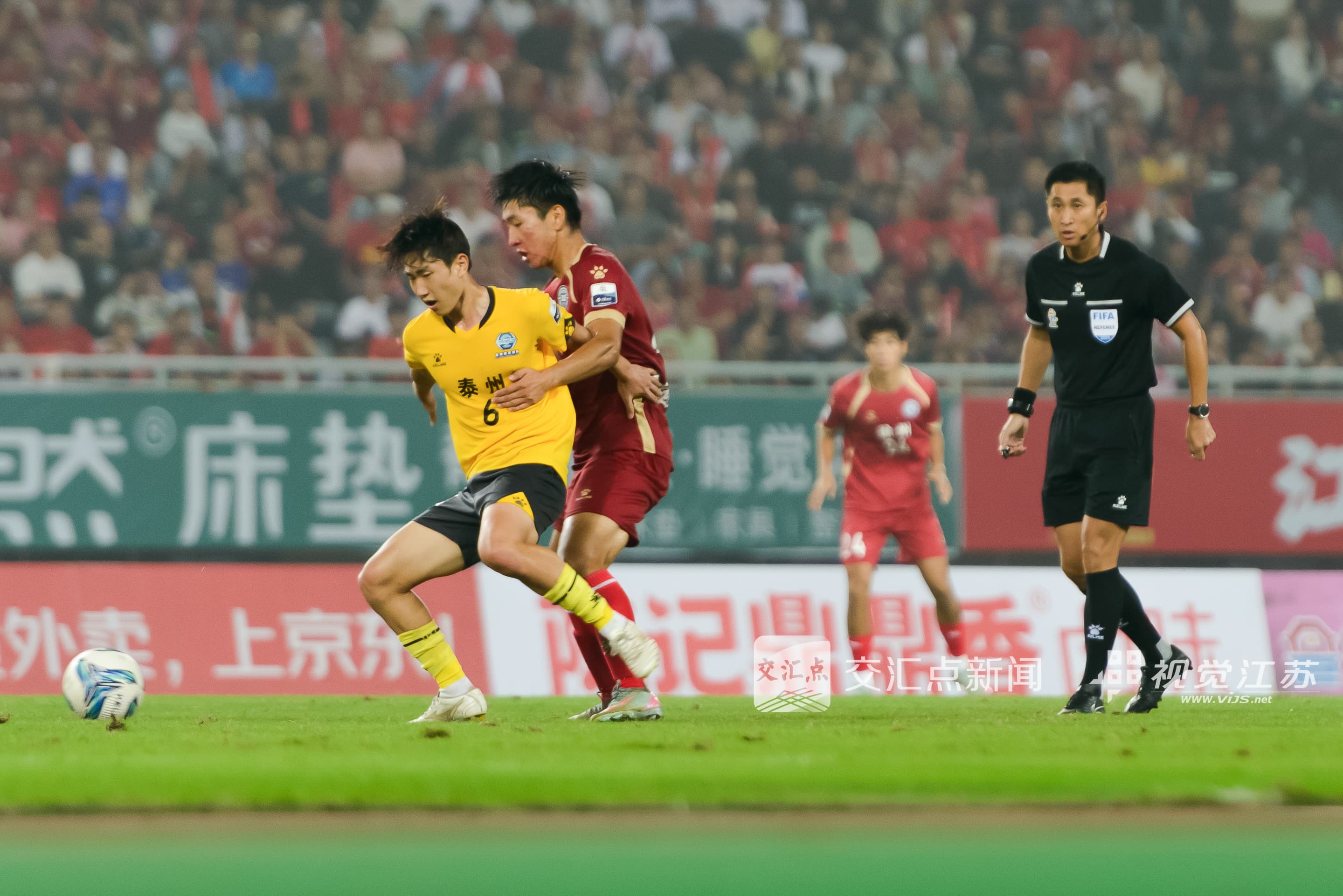 10月5日19:35,“苏超”联赛四分之一决赛第二场,泰州队客场在徐州奥体中心体育场挑战徐州队。经过90多分钟的鏖战,在30336名观众的见证下,泰州队点球大战中四罚四中,最终5比3力克徐州队,晋级四强。