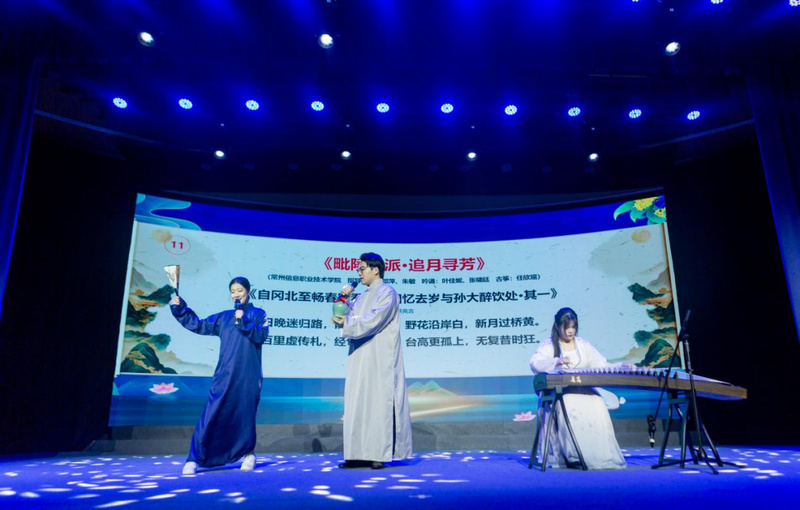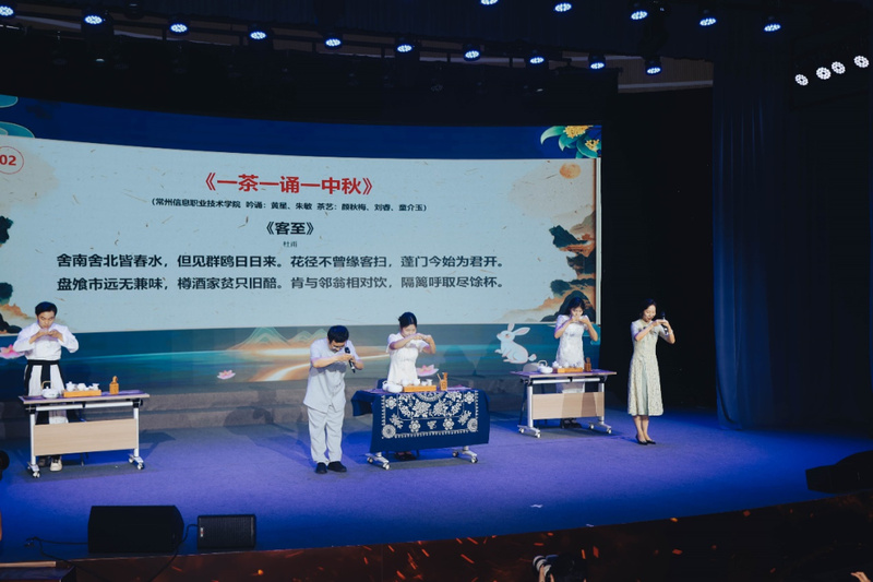作为本次雅集的重要承办单位,常州信息职业技术学院充分发挥常州吟诵传承基地的示范引领作用,积极统筹协调活动资源,为雅集的顺利举办提供了有力保障。学院不仅精心创排《一茶一诵一中秋》《毗陵诗派·追月寻芳》等优质节目,展现深厚的文化传承实力,还组织数字经济学院志愿者全程参与活动服务,充分体现了高校在非遗保护与传承中的责任担当,为常州吟诵在校园的普及推广作出了积极贡献。