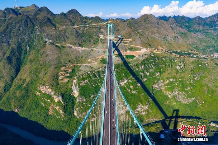 中新社贵州贞丰10月6日电 (记者 周燕玲)今年国庆中秋假期,刚于9月底通车的贵州花江峡谷大桥成为当地热门打卡地。