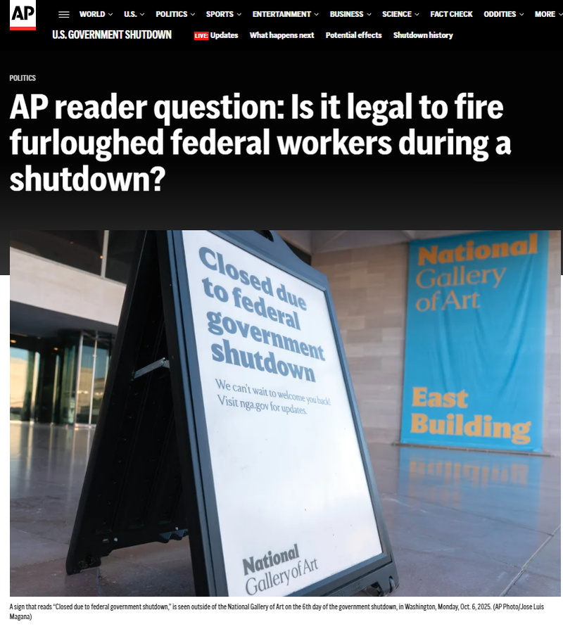 这个引起激烈讨论的问题,却最终可能需要交由法院来裁决。因为美国法律规定,裁员必须要提前60天通知员工。显然在政府关门期间解雇任何员工是达不到法律规定的期限的。