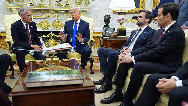 当地时间10月7日,美国总统特朗普在白宫与到访的加拿大总理卡尼举行会谈,双方就贸易和加沙等议题进行讨论。