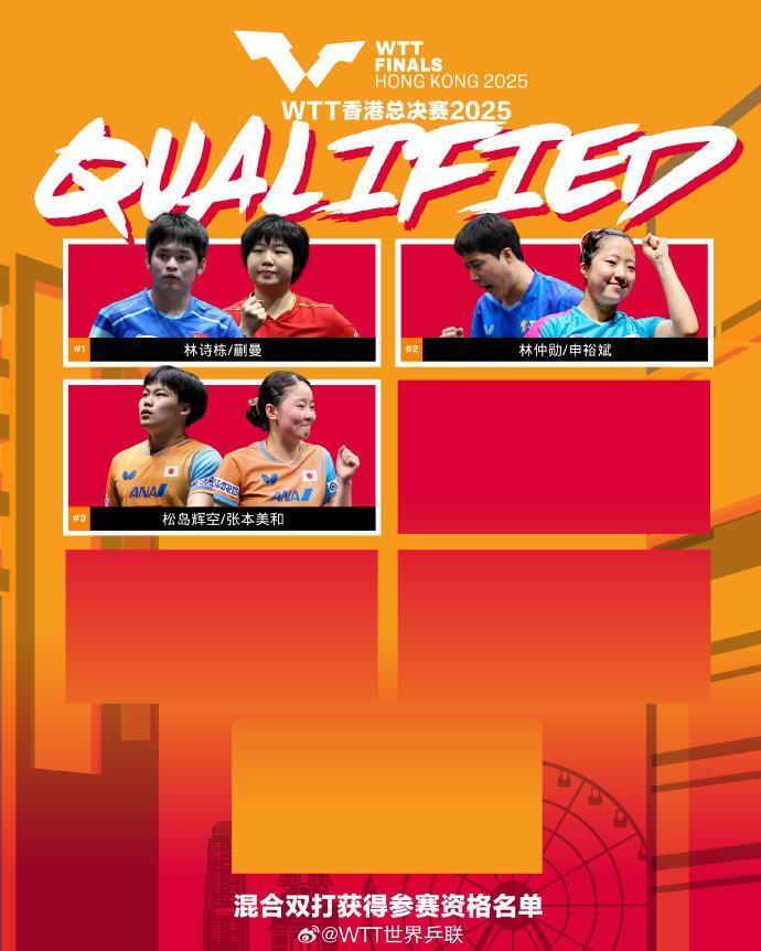 WTT世界乒联发布截至7日16时获得2025WTT香港总决赛参赛资格的名单,国乒多人入选。