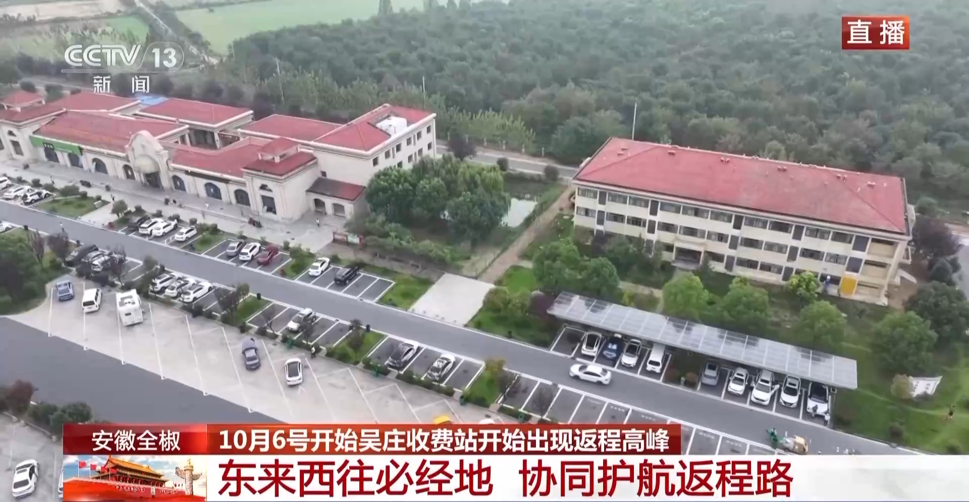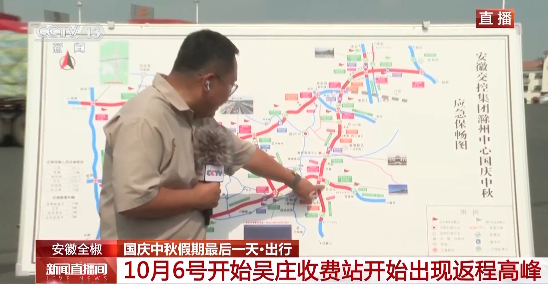 总台记者 吴俊:这张照片是在吴庄收费站拍摄的,往江苏方向的车辆几乎把24个车道填满了。