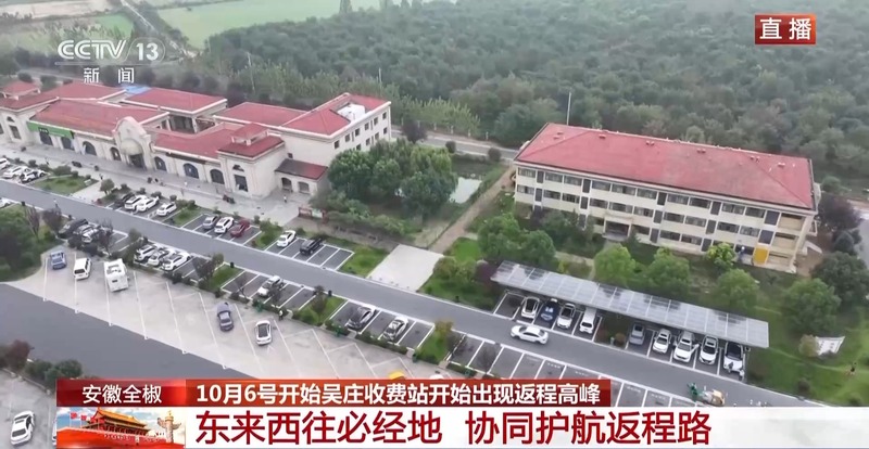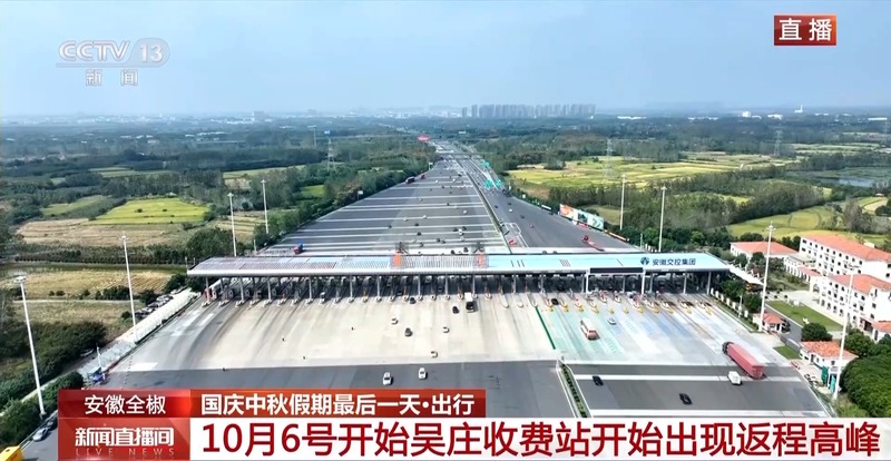 位于安徽省全椒县境内的吴庄收费站毗邻安徽、江苏两省的交界处,收费站双向共有36个车道,也是目前国内车道数最多的收费站。从10月6日开始,吴庄收费站就开始出现返程高峰。
