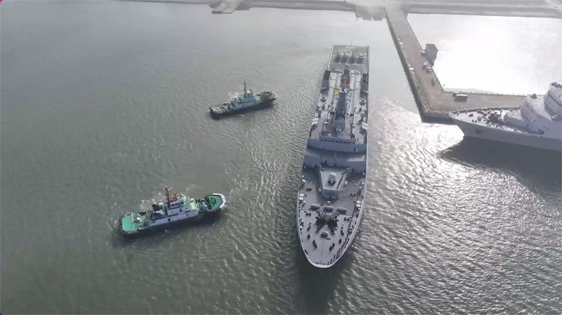 海军井冈山舰,舷号999,是海军071型综合登陆舰。该舰于2011年11月28日入列服役,总长210米,宽28米,排水量19000余吨。入列以来,先后执行亚丁湾护航、中柬“金龙—2023”联演等多项重大演训任务。