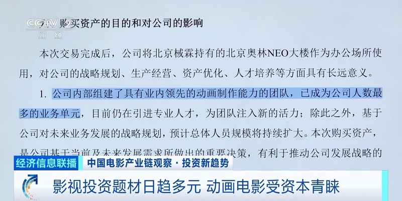 光线传媒公告称,公司内部组建了具有业内领先的动画制作能力的团队,已成为公司人数最多的业务单元;万达电影称,目前动画电影是其布局的重点,公司连续多年参投《熊出没》系列,获得了较好的票房收益。从多家相关上市公司的储备片单来看,动画电影占据重要一席。