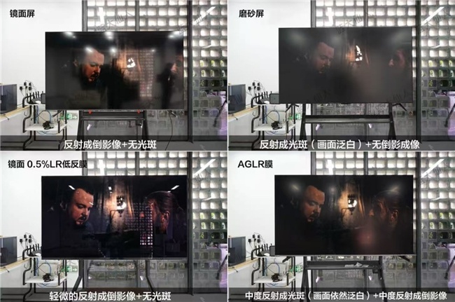 很多同价位电视用的还是“磨砂膜”式的AGLR低反屏。原理很简单,就是在屏幕表面做磨砂处理,把光线打散。代价呢?就是画面像蒙上一层纱,色彩通透度大打折扣,为了不反光,牺牲了画质。